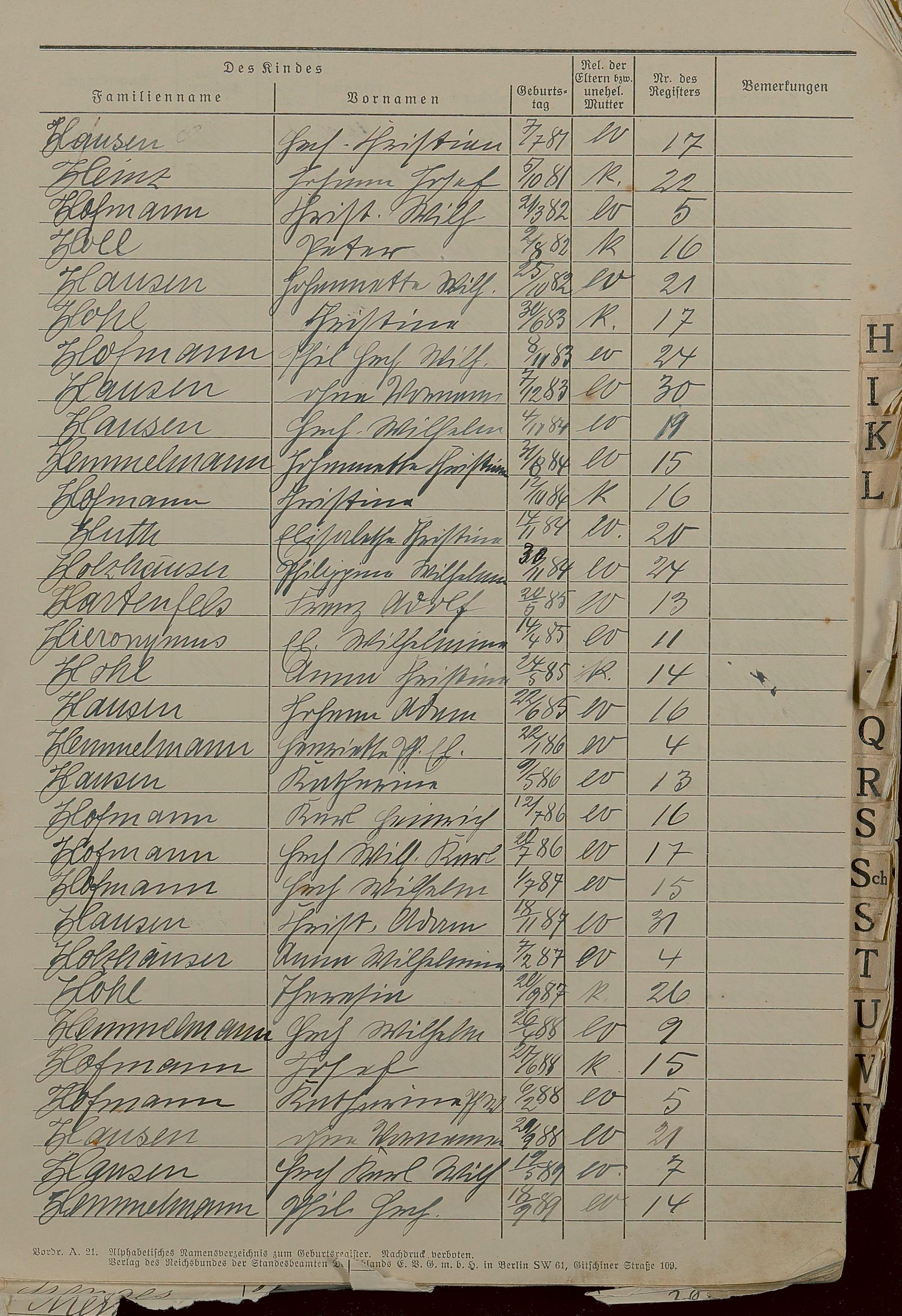 Geburtsregister 1874-1951 - Register A - Z
