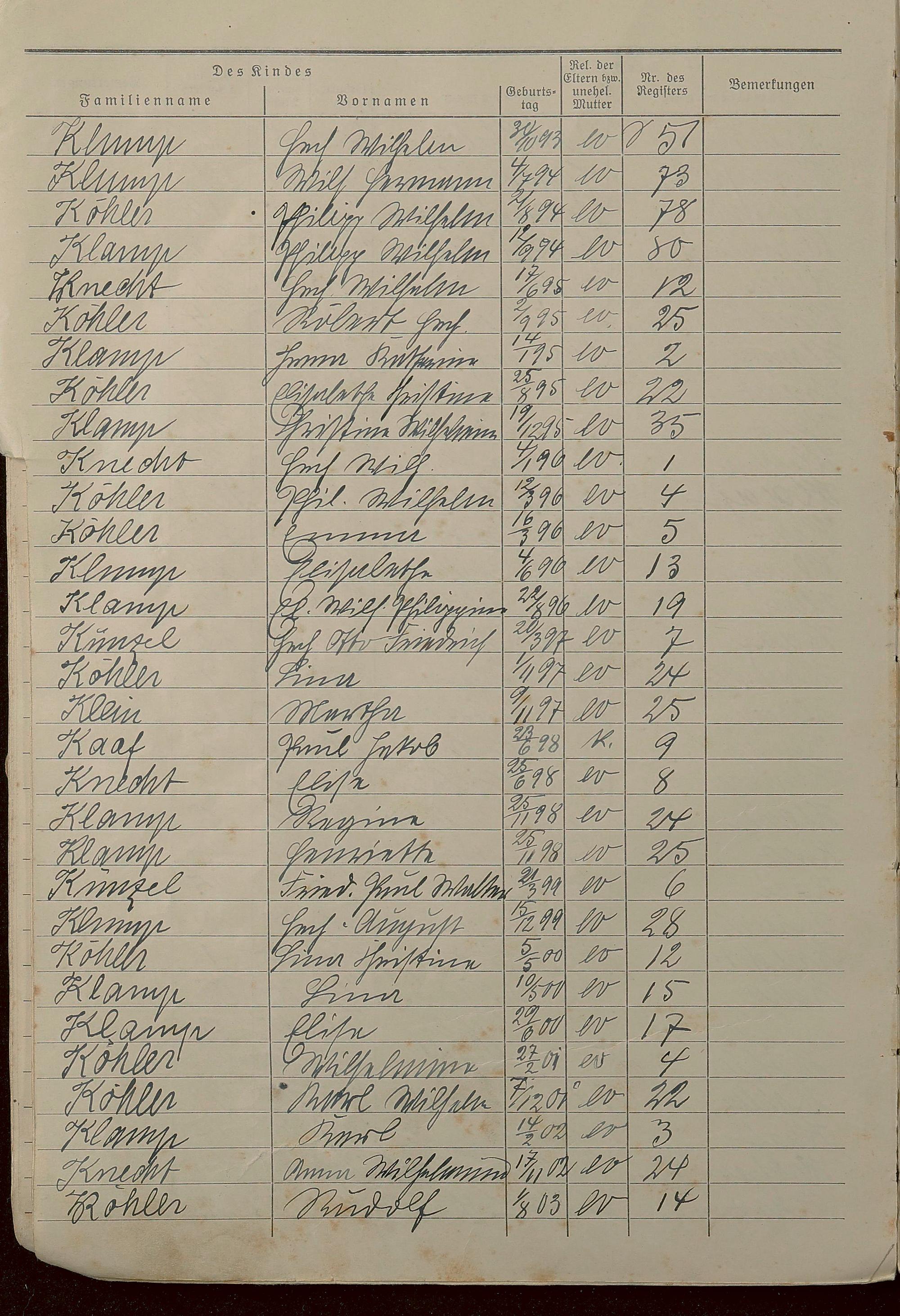 Geburtsregister 1874-1951 - Register A - Z