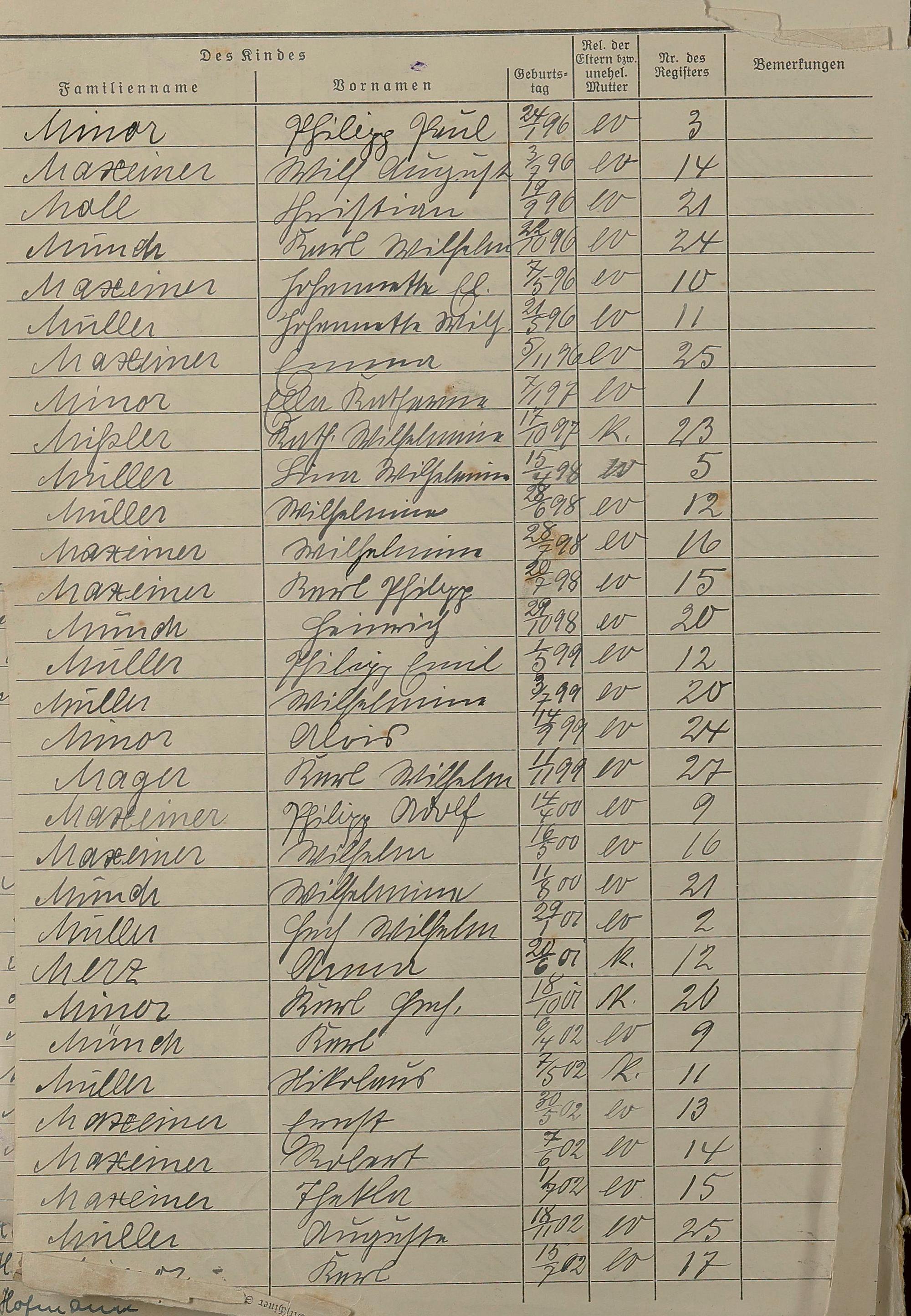 Geburtsregister 1874-1951 - Register A - Z