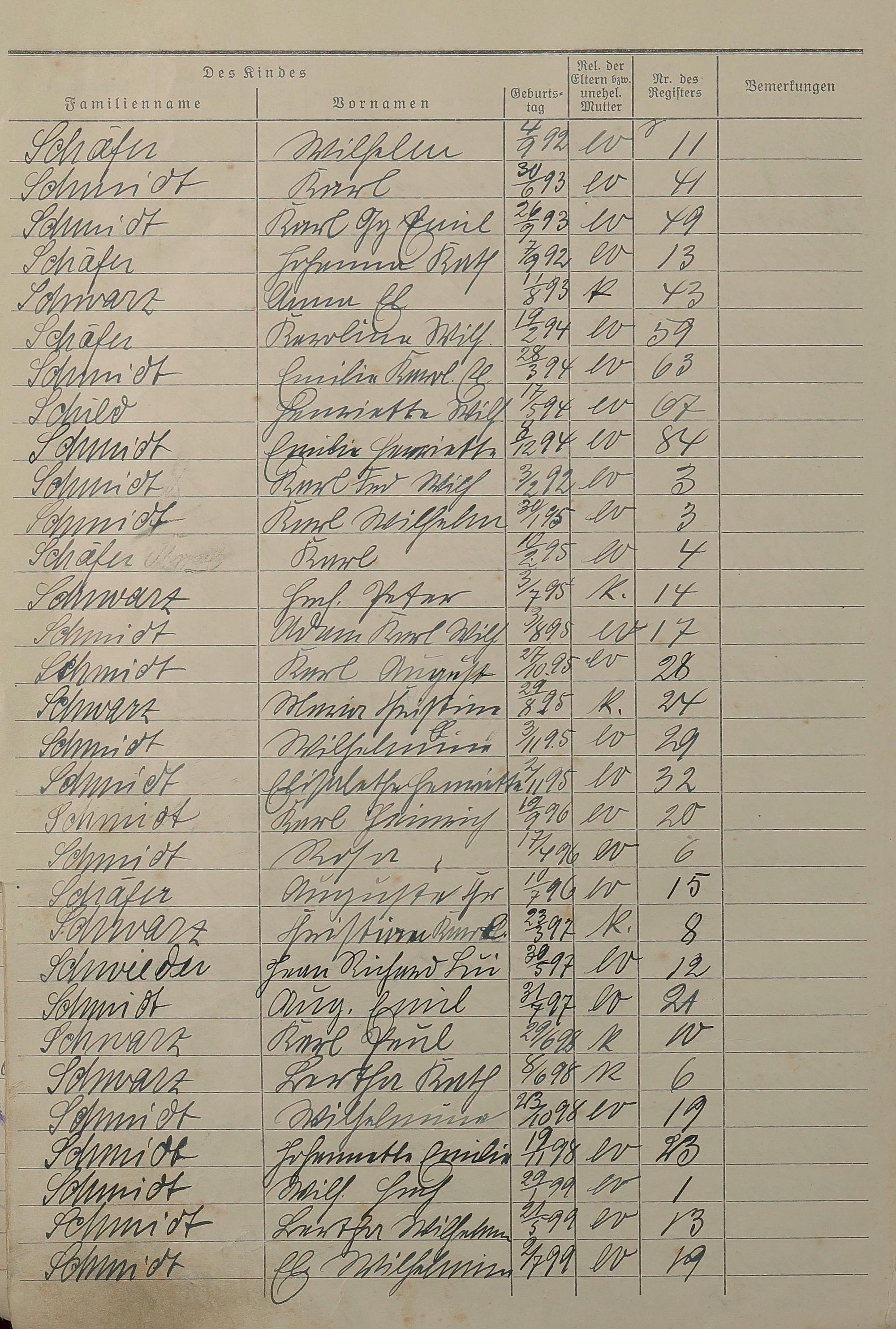 Geburtsregister 1874-1951 - Register A - Z