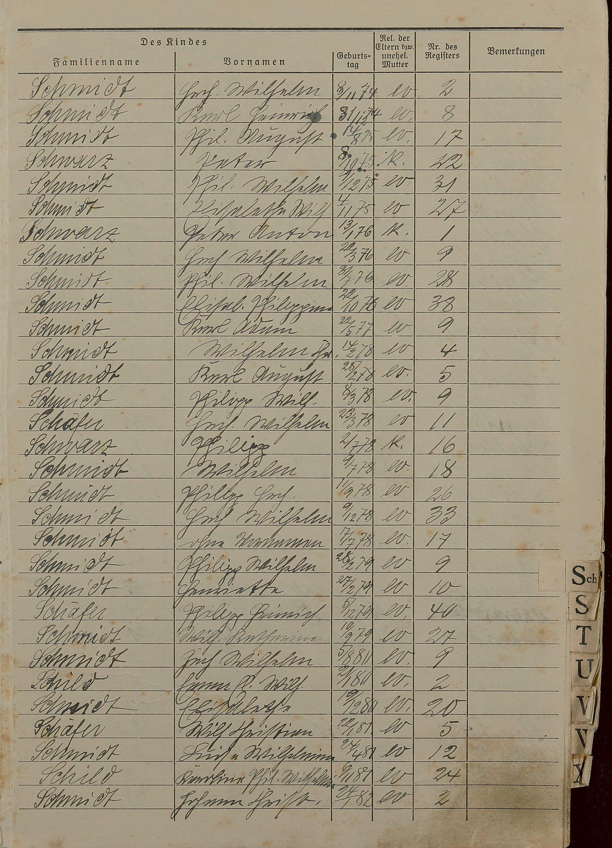 Geburtsregister 1874-1951 - Register A - Z