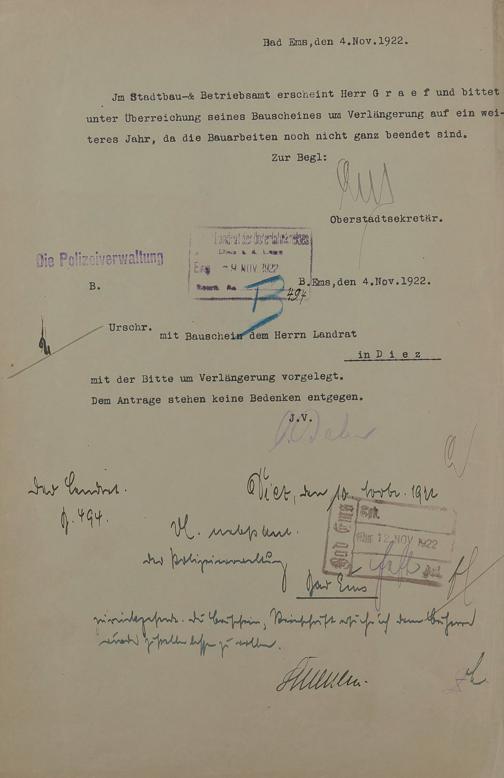 Bauangelegenheiten der Villa "Aurora" des Leonhard Graef/Wilhelm Schnatz Bad Ems Villenpromenade Nr. 10 (9) Flur 89 Nr. 9/4 (9)