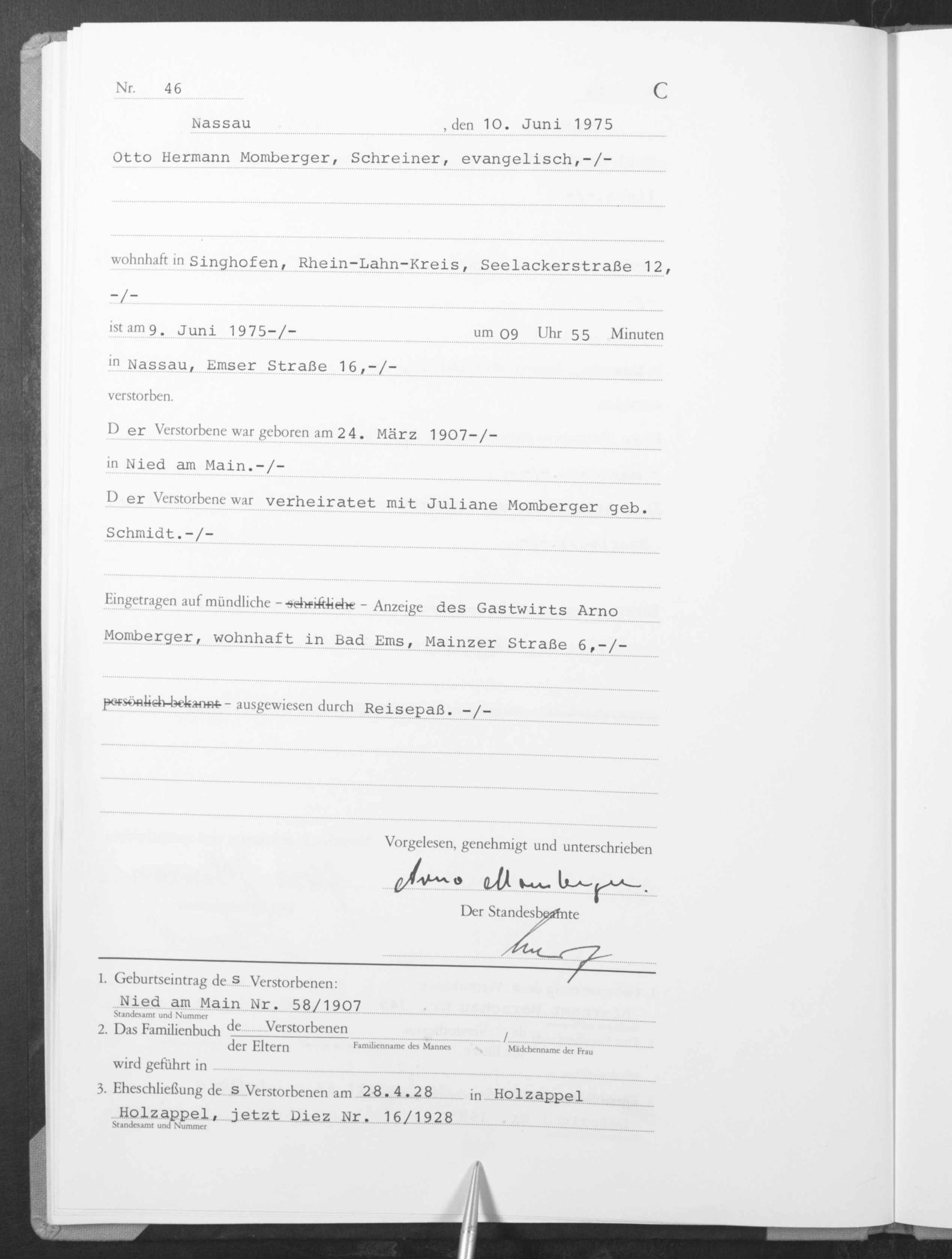 Sterberegister 1975