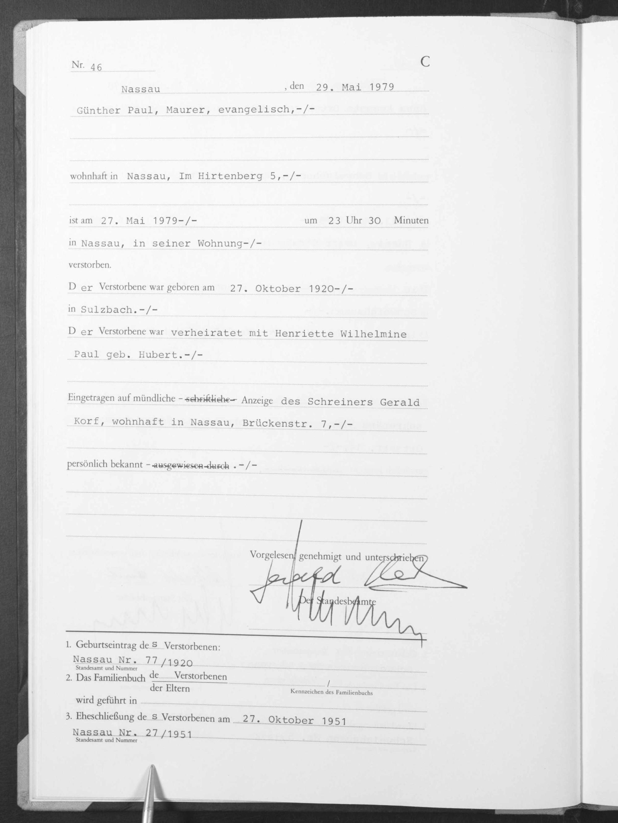 Sterberegister 1979