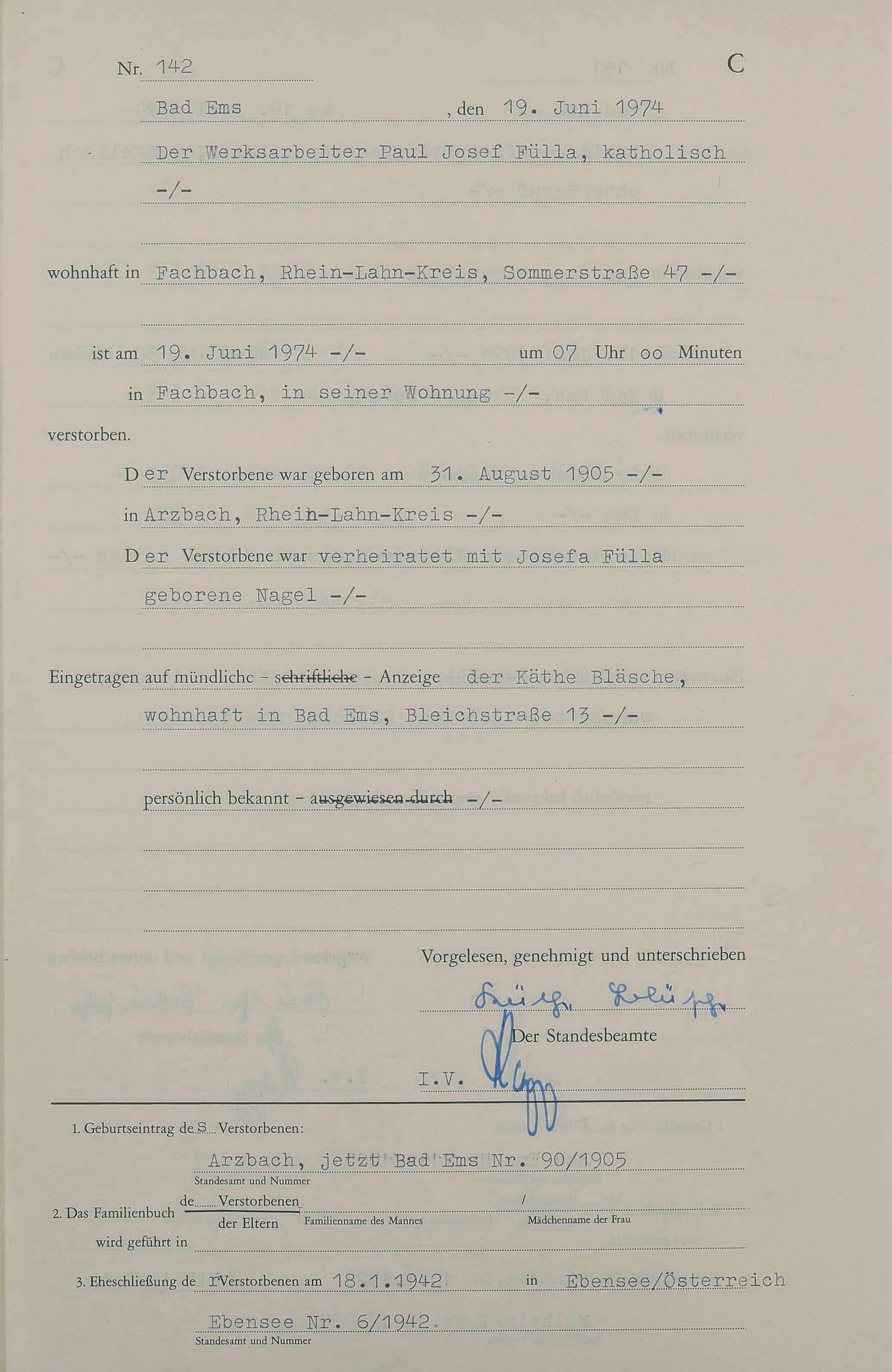 1301: Sterberegister 1974