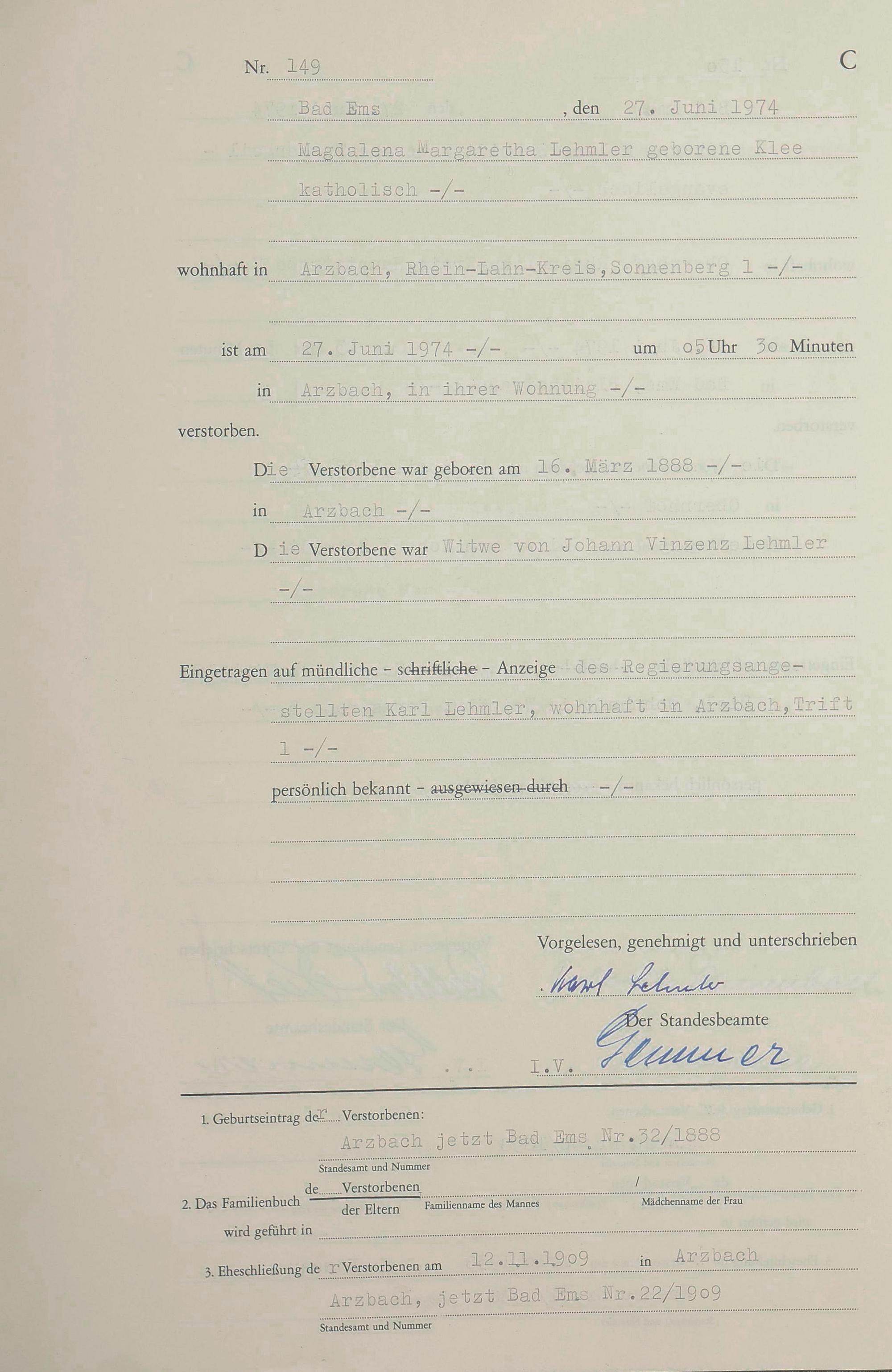 1301: Sterberegister 1974