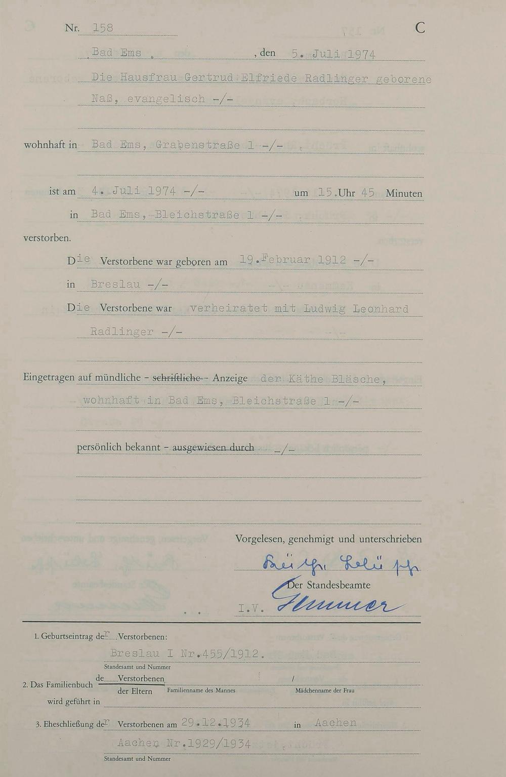 1301: Sterberegister 1974