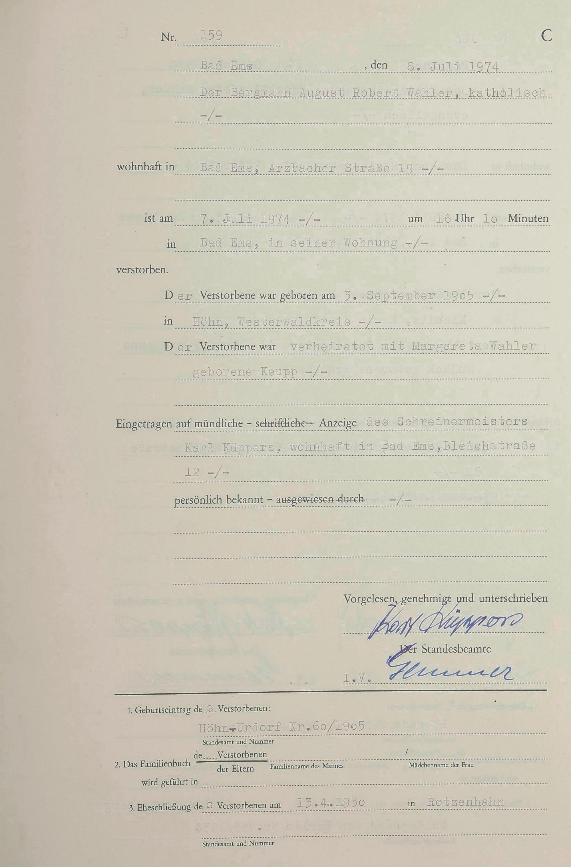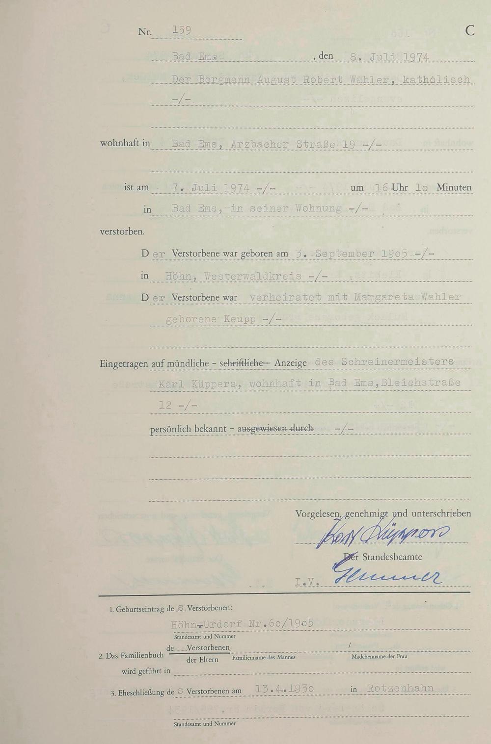 1301: Sterberegister 1974