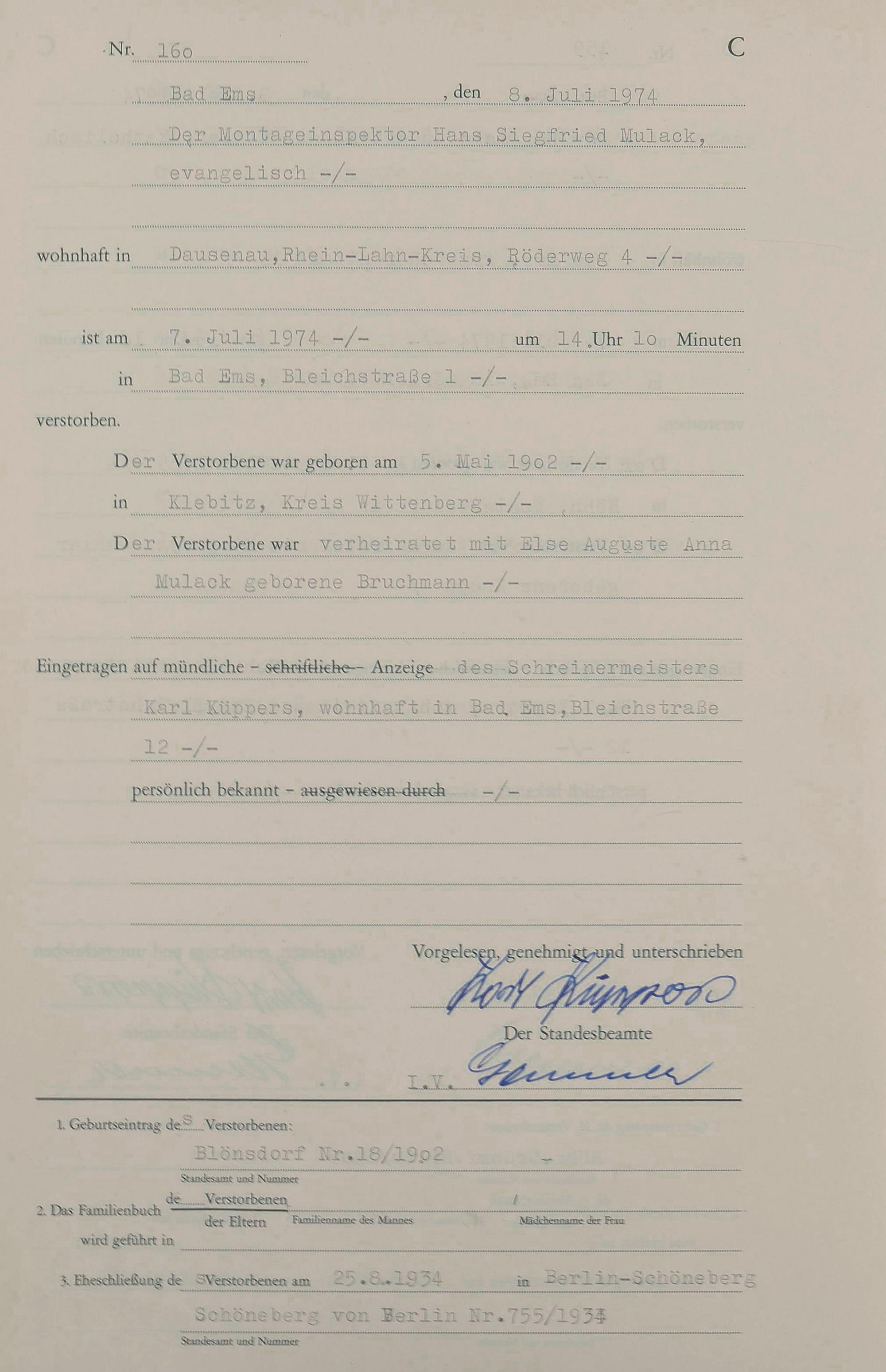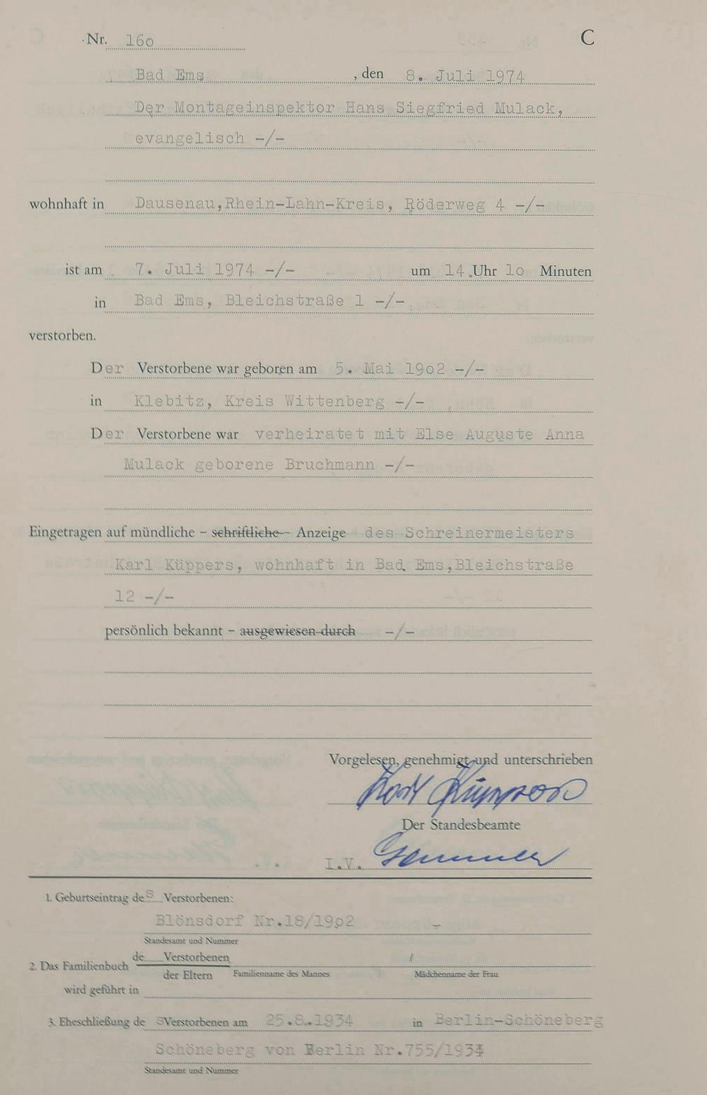 1301: Sterberegister 1974