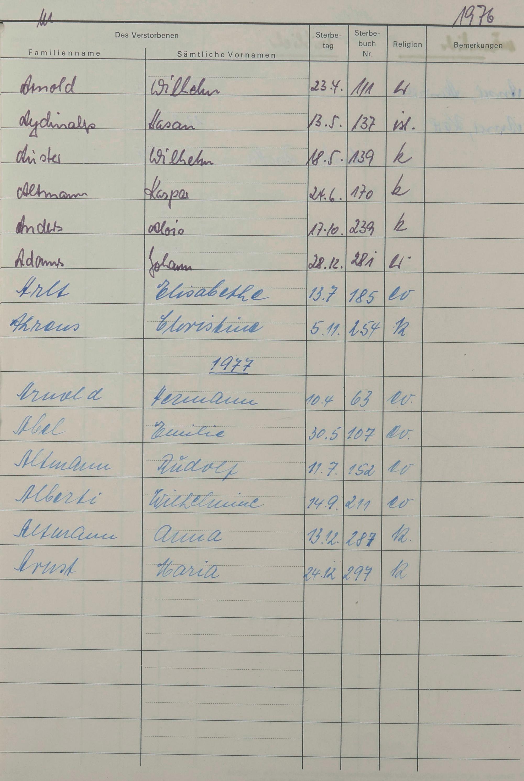 A - Register Sterbefälle 1974-1995