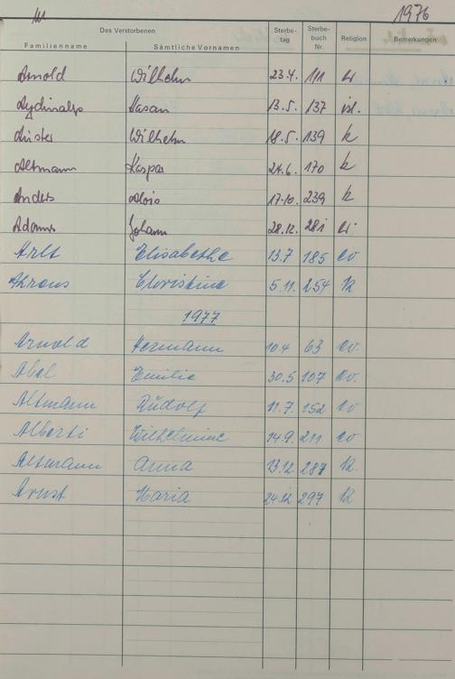 W - Register Sterbefälle 1974-1995