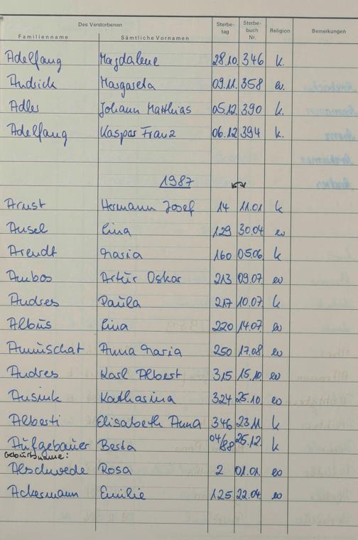 A - Register Sterbefälle 1974-1995