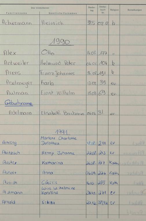 Register zum Sterberegister 1974-1995 A-Z