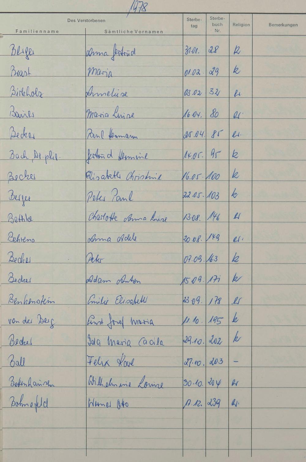 B - Register Sterbefälle 1974-1995