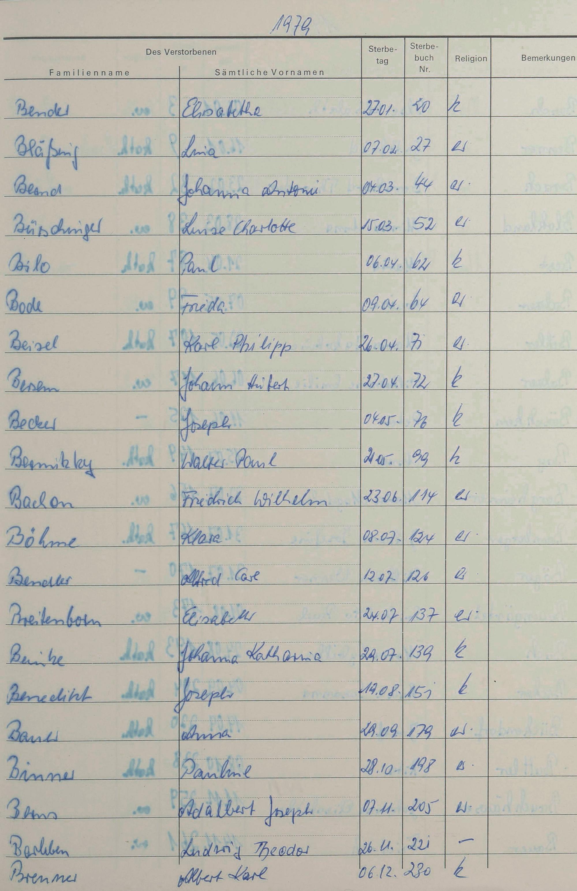 B - Register Sterbefälle 1974-1995