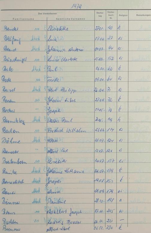 Register zum Sterberegister 1974-1995 A-Z