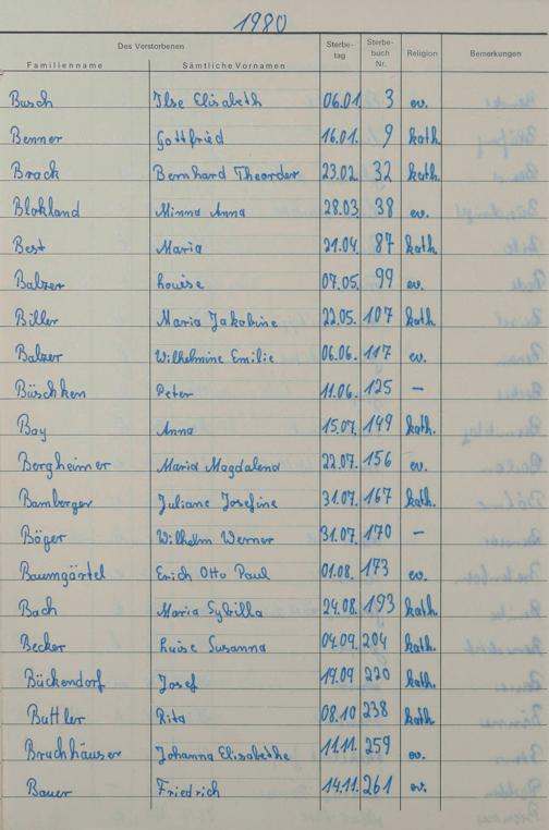 Register A-Z zum Sterberegister 1974-1995