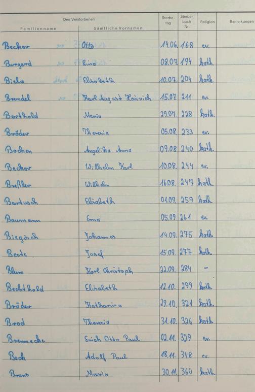 Register zum Sterberegister 1974-1995 A-Z