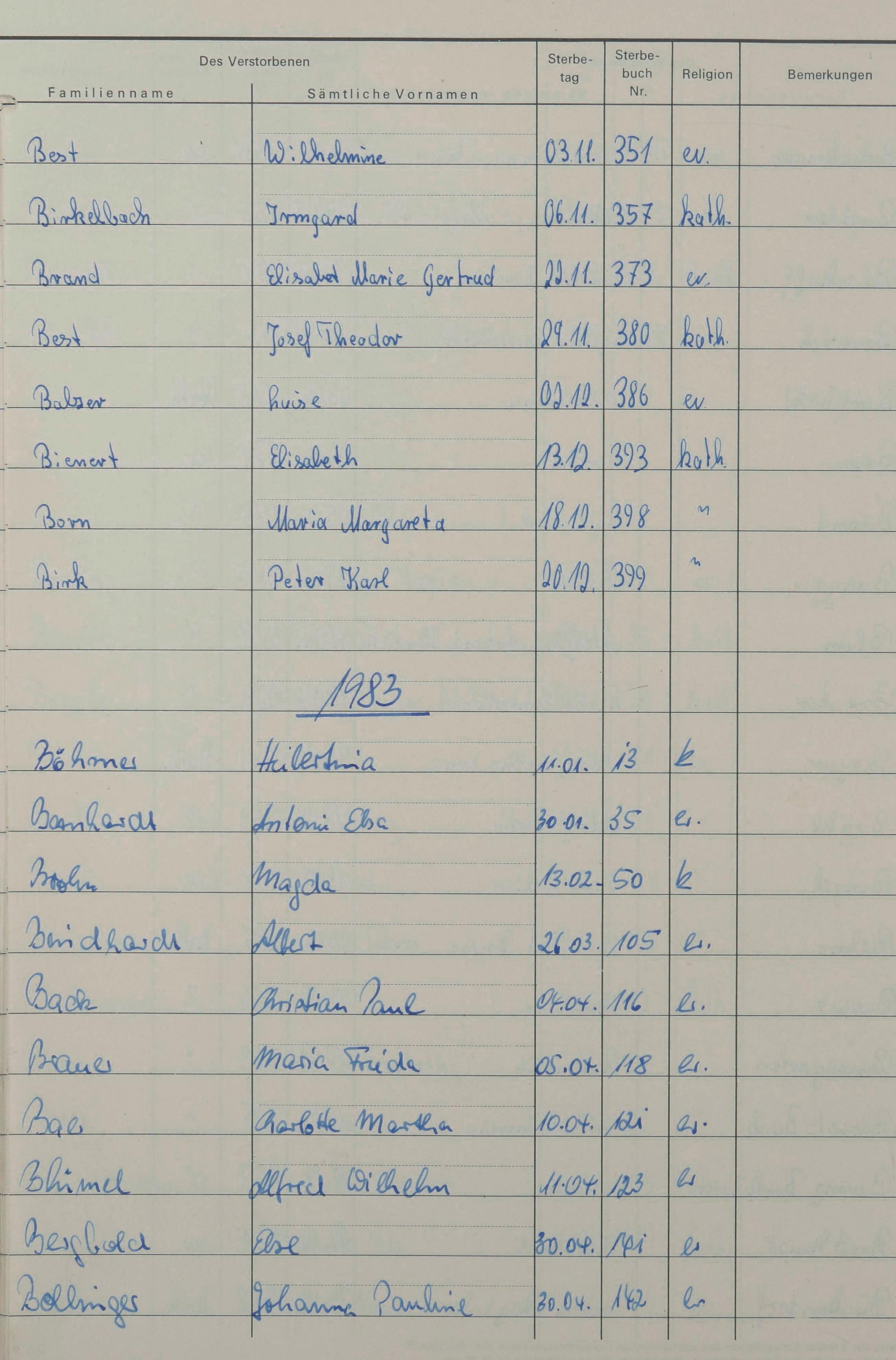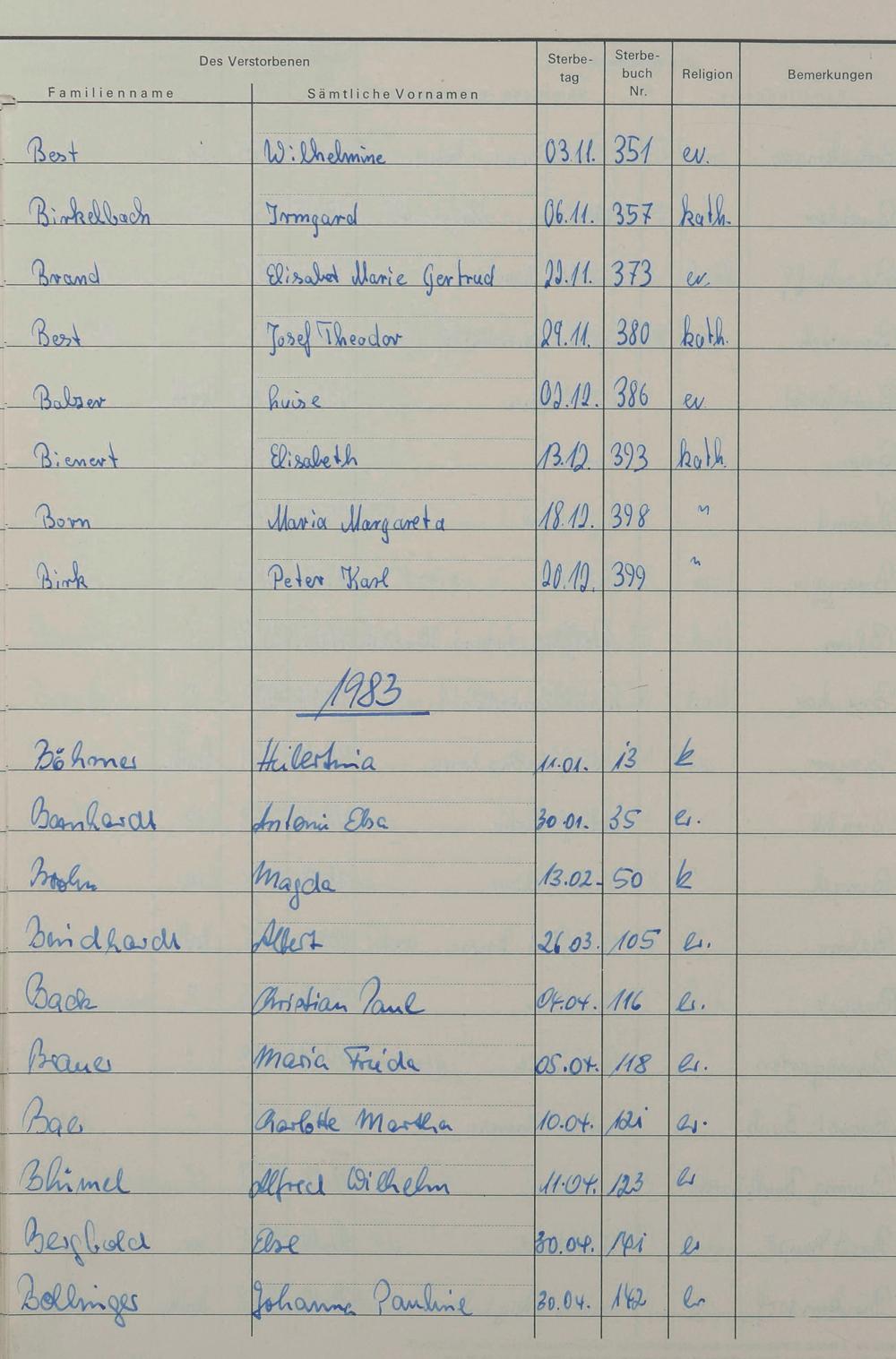 B - Register Sterbefälle 1974-1995