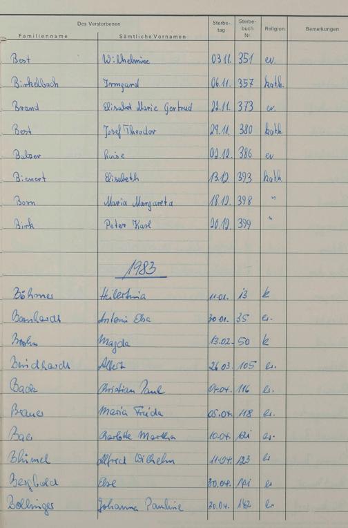C - Register Sterbefälle 1974-1995