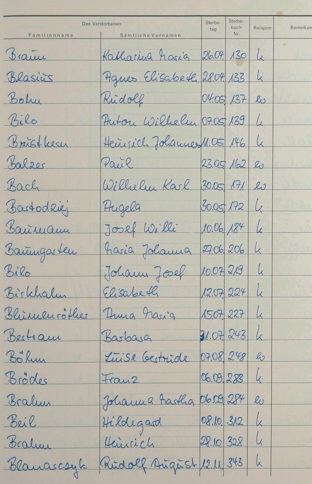 B - Register Sterbefälle 1974-1995