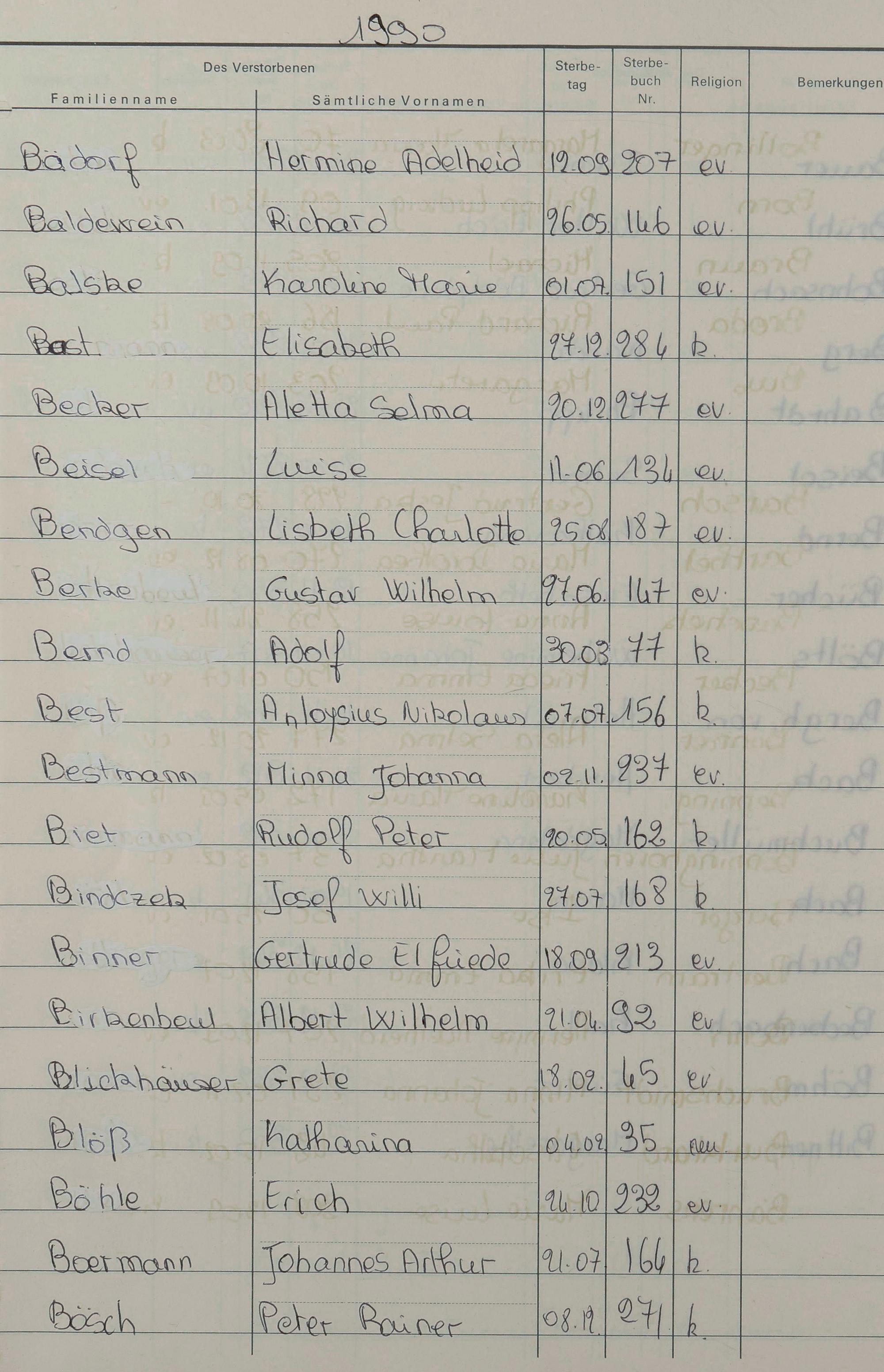 B - Register Sterbefälle 1974-1995