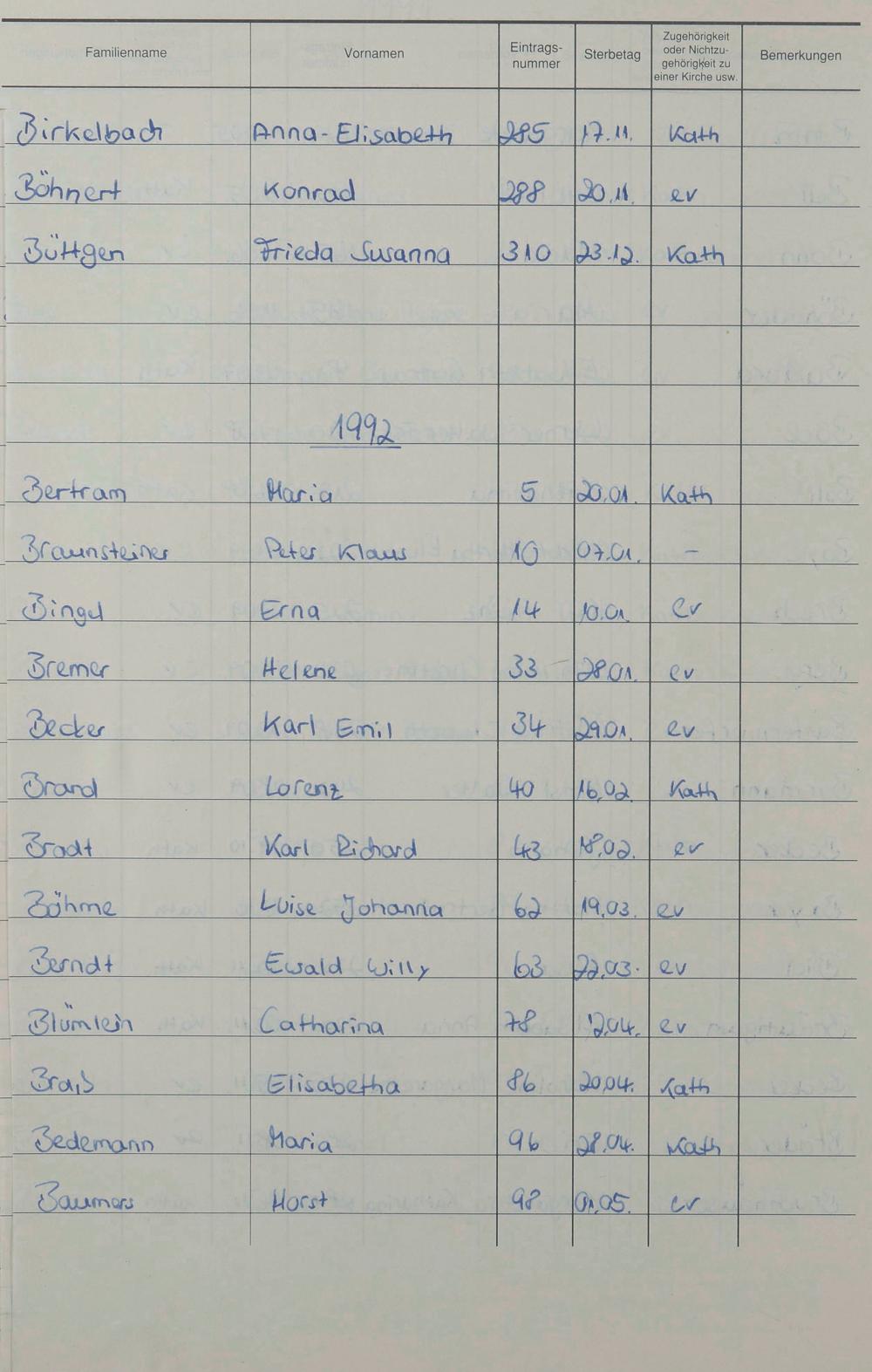 B - Register Sterbefälle 1974-1995