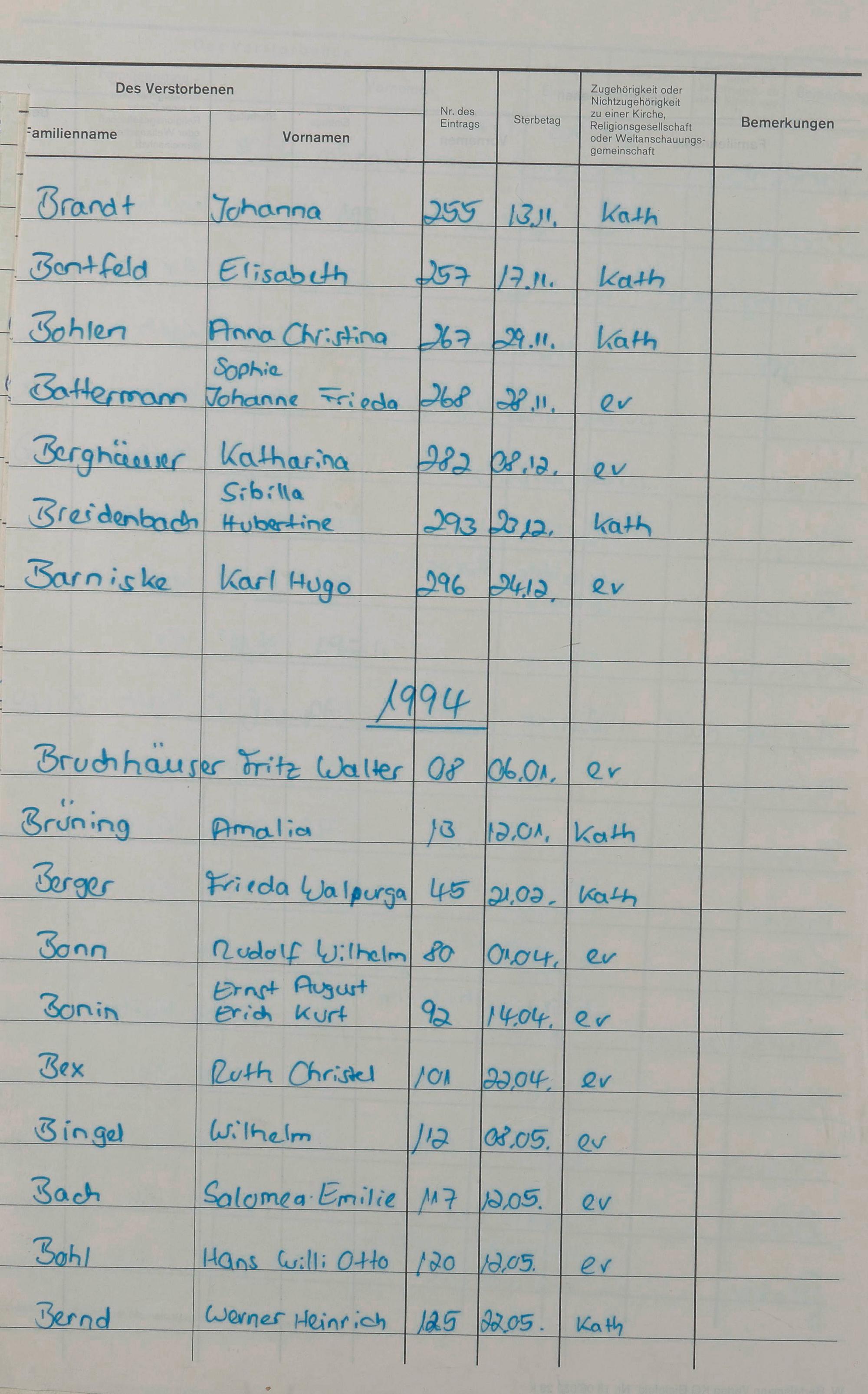 B - Register Sterbefälle 1974-1995