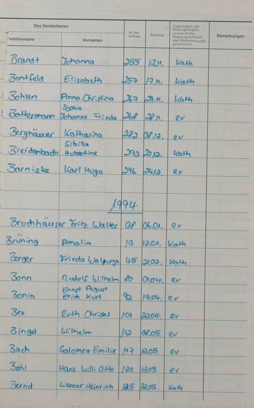 C - Register Sterbefälle 1974-1995