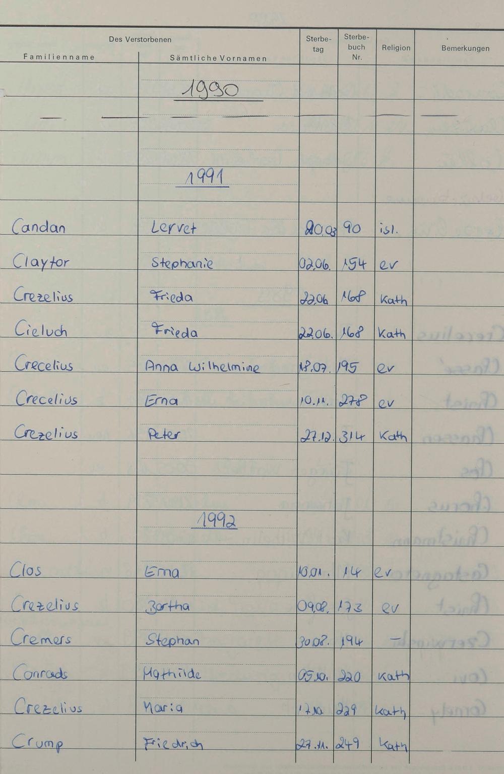 C - Register Sterbefälle 1974-1995