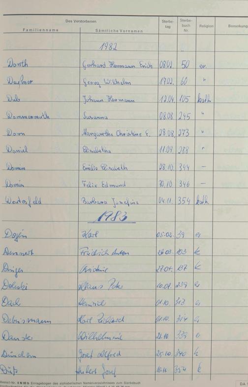 Register zum Sterberegister 1974-1995 A-Z