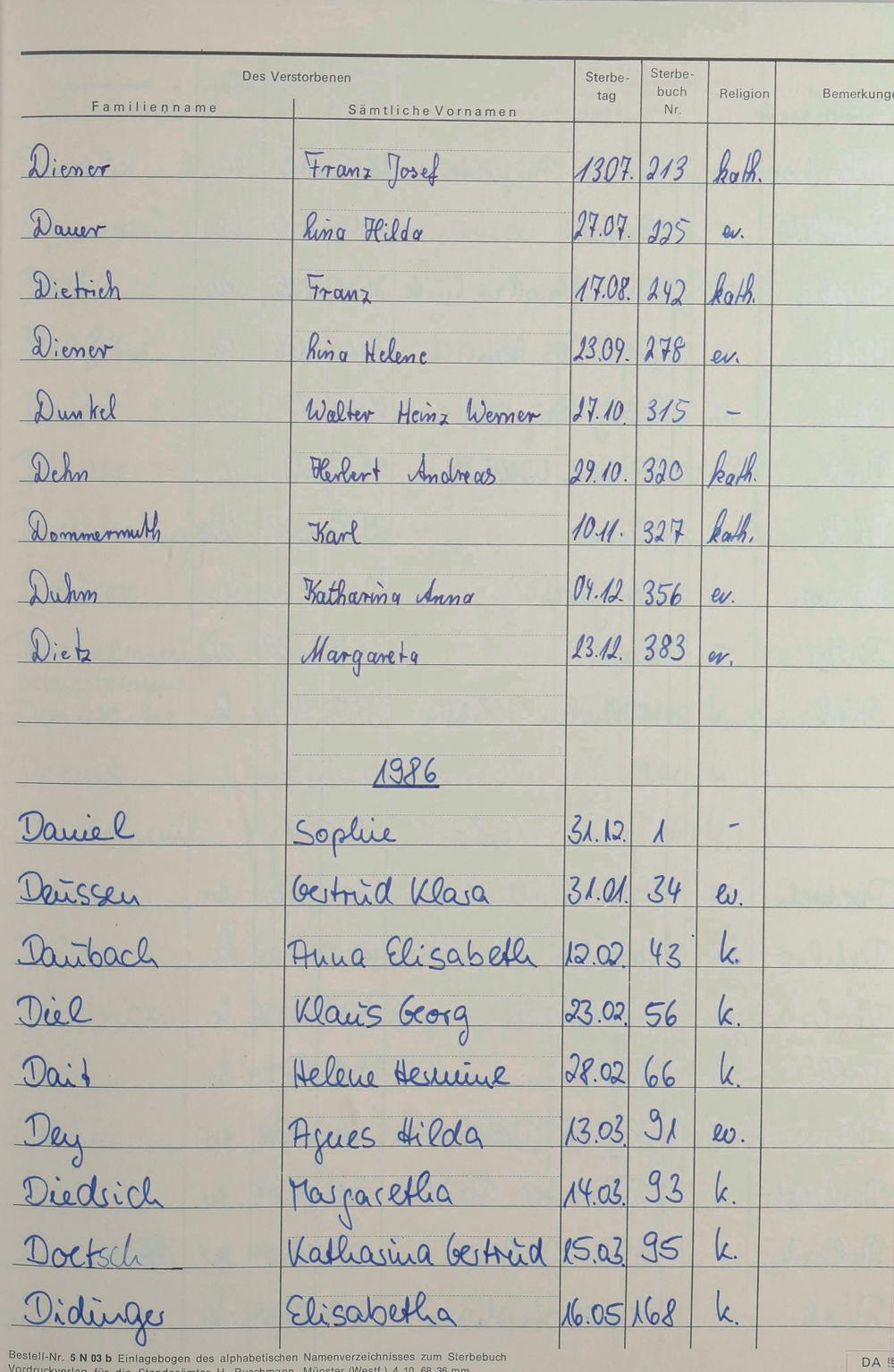 Register A-Z zum Sterberegister 1974-1995