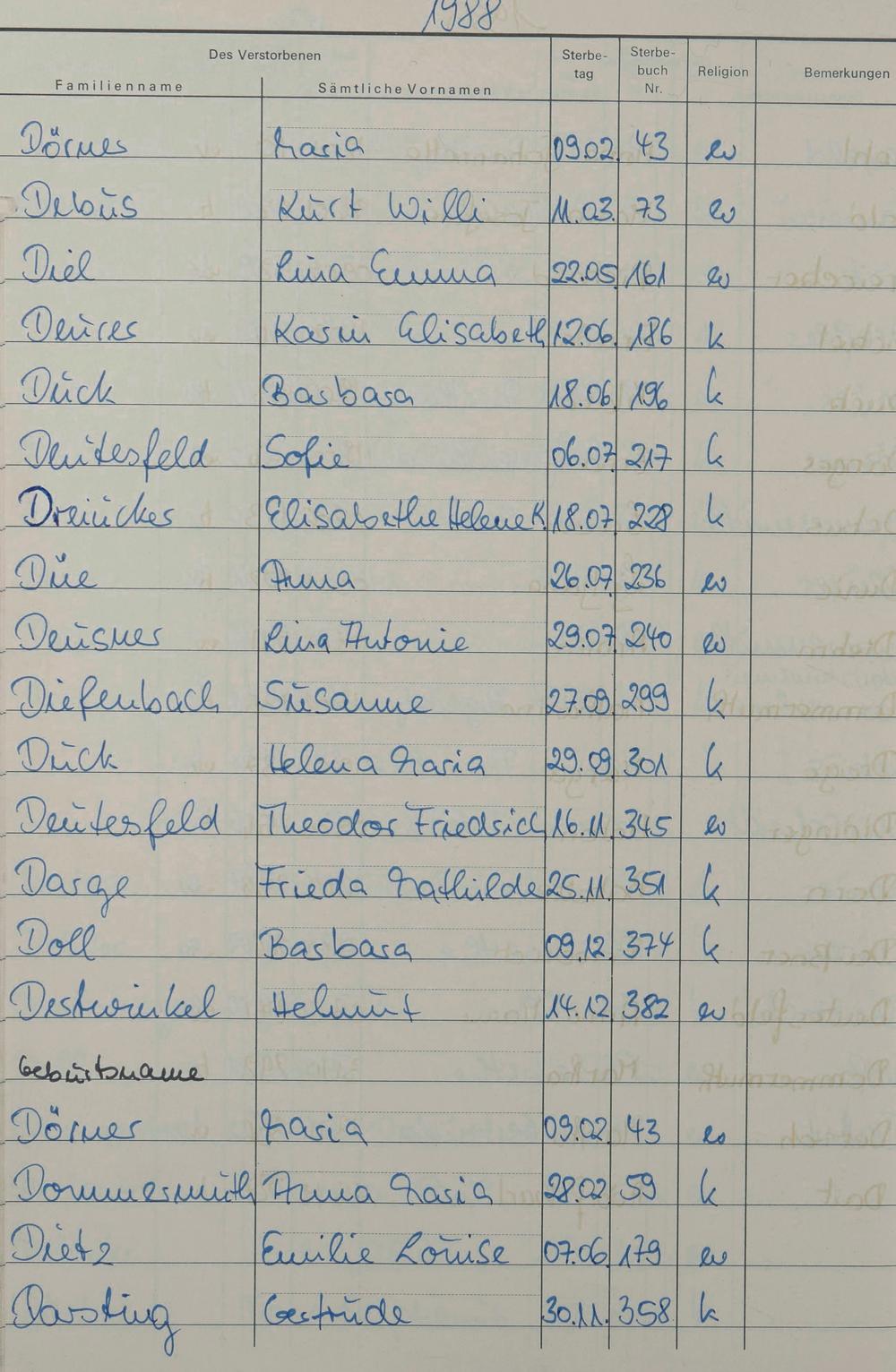 Register zum Sterberegister 1974-1995 A-Z