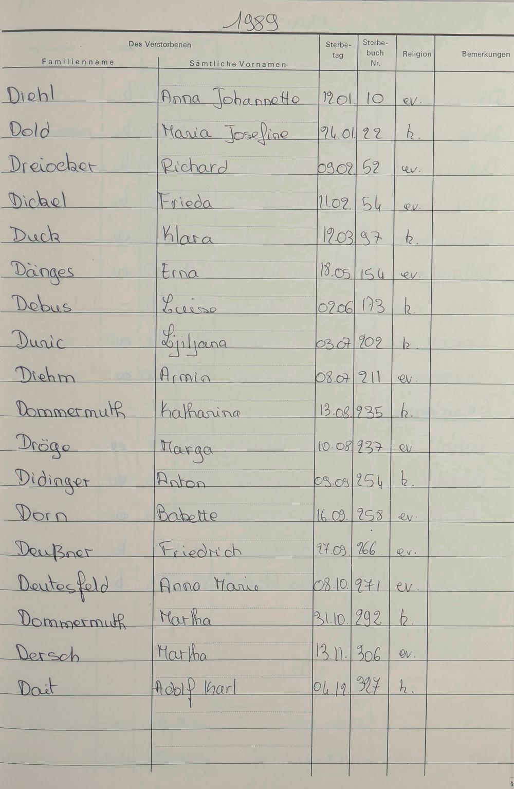 Register A-Z zum Sterberegister 1974-1995