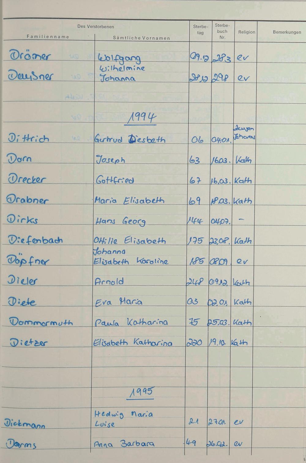 O - Register Sterbefälle 1974-1995