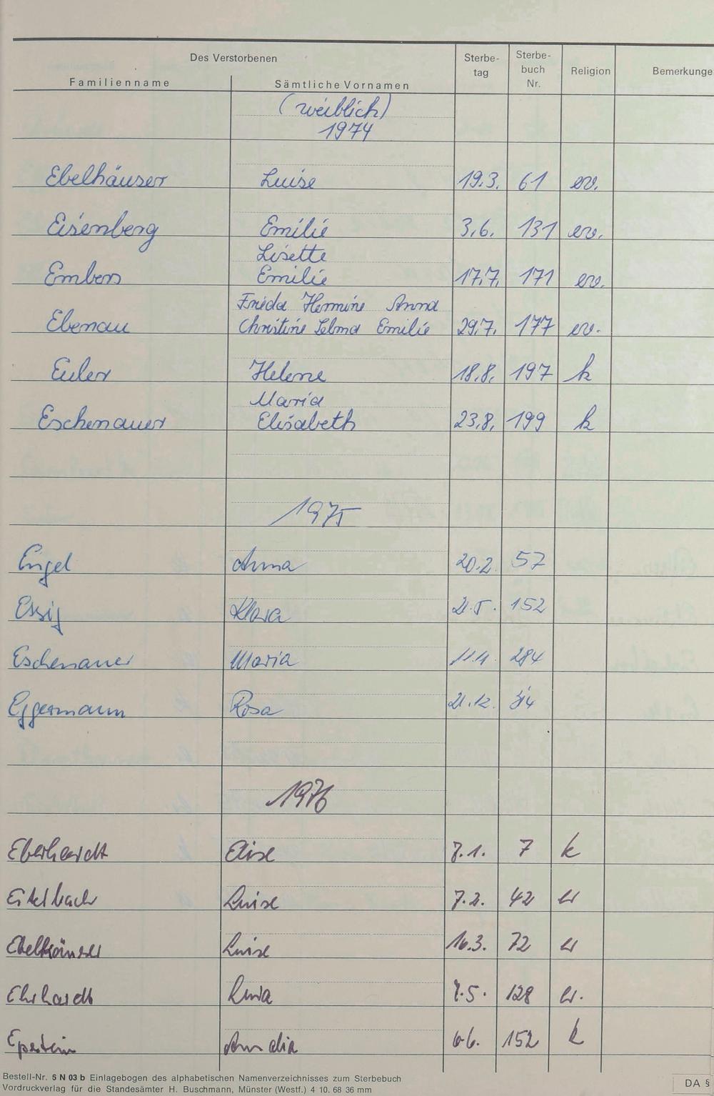 A - Register Sterbefälle 1974-1995