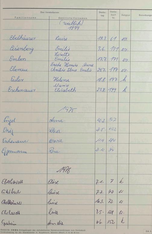 C - Register Sterbefälle 1974-1995