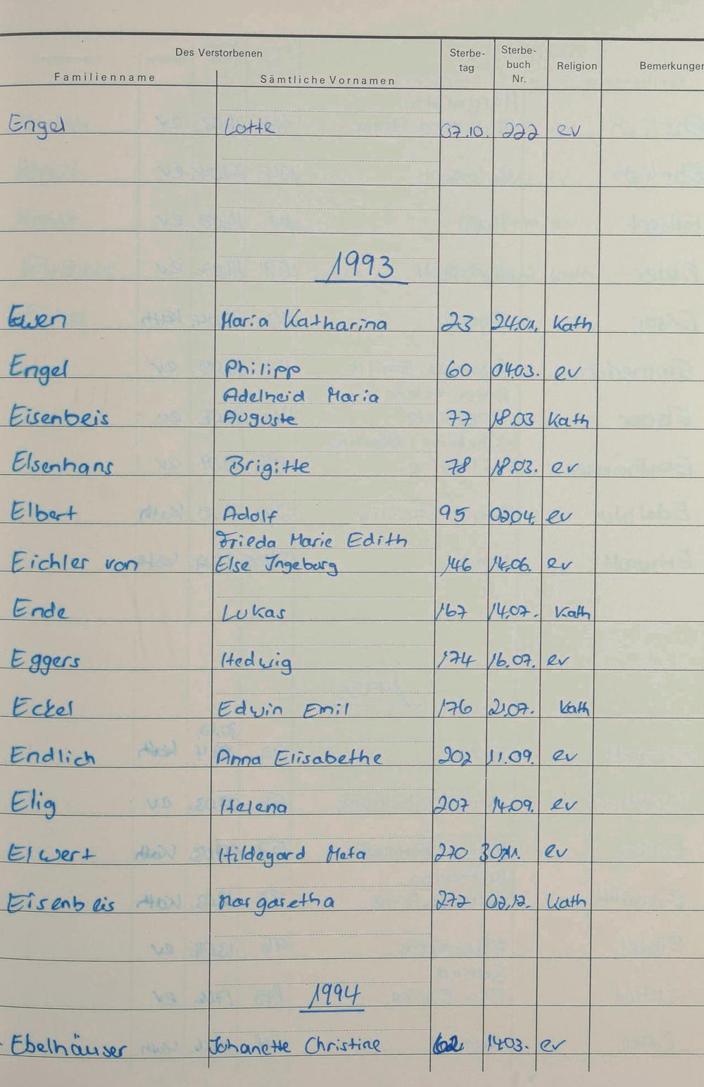 C - Register Sterbefälle 1974-1995