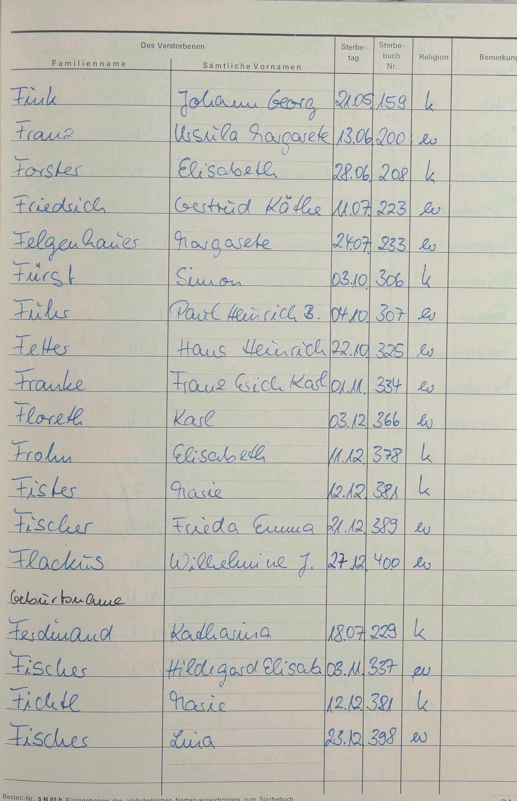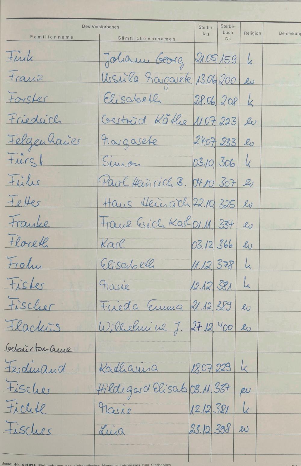 F - Register Sterbefälle 1974-1995
