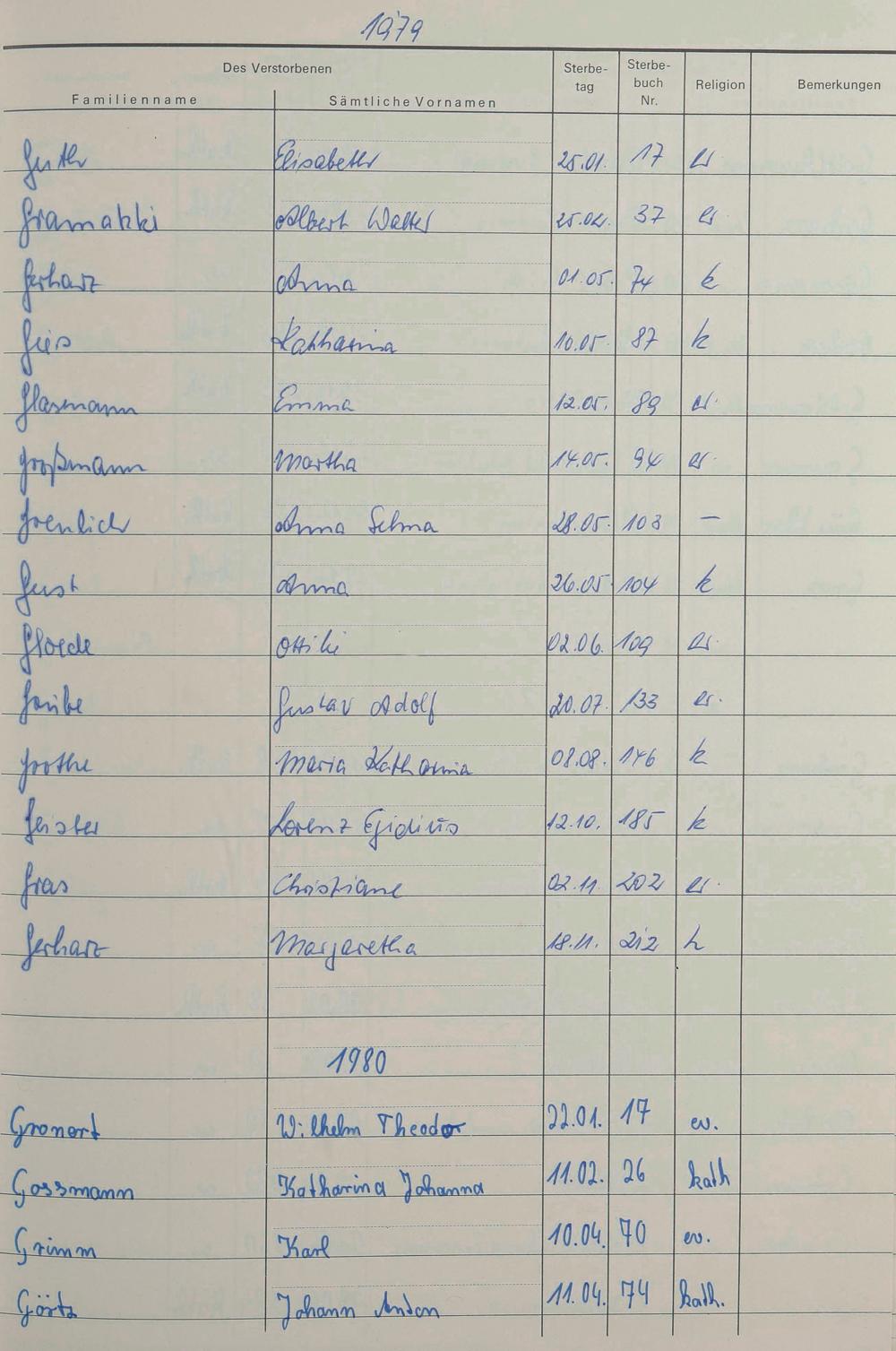 Q - Register Sterbefälle 1974-1995