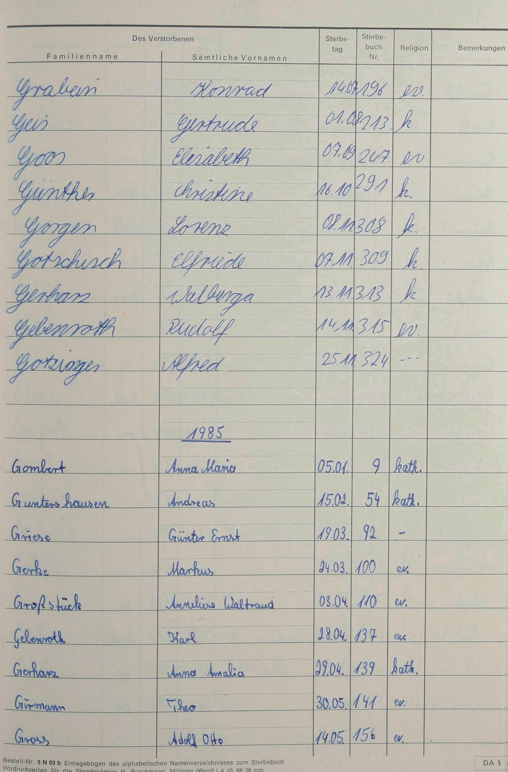 Register A-Z zum Sterberegister 1974-1995