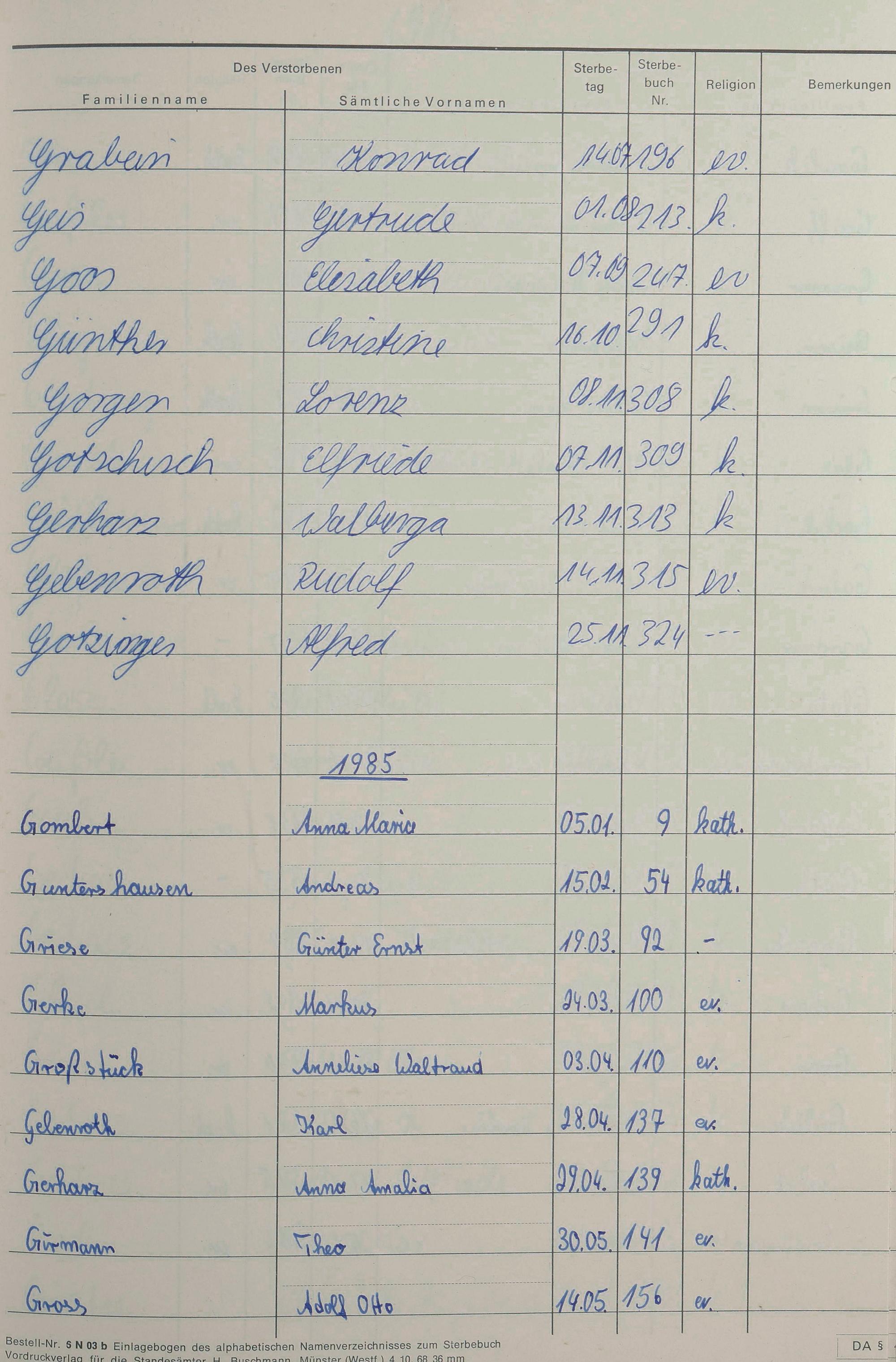 G - Register Sterbefälle 1974-1995