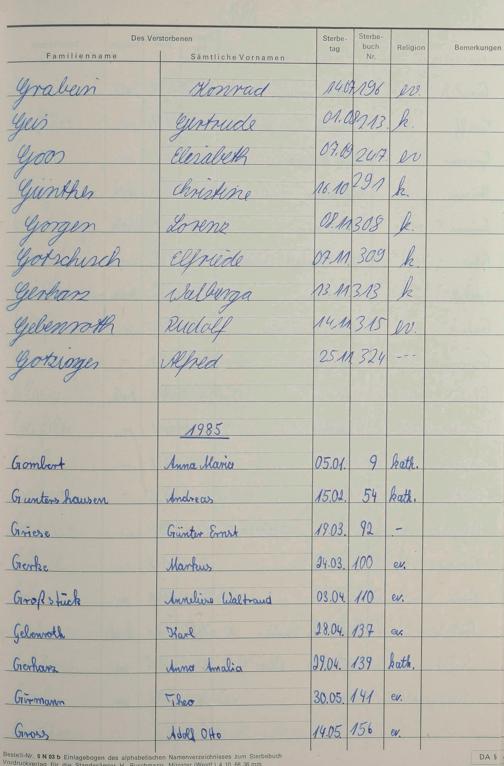 Register zum Sterberegister 1974-1995 A-Z