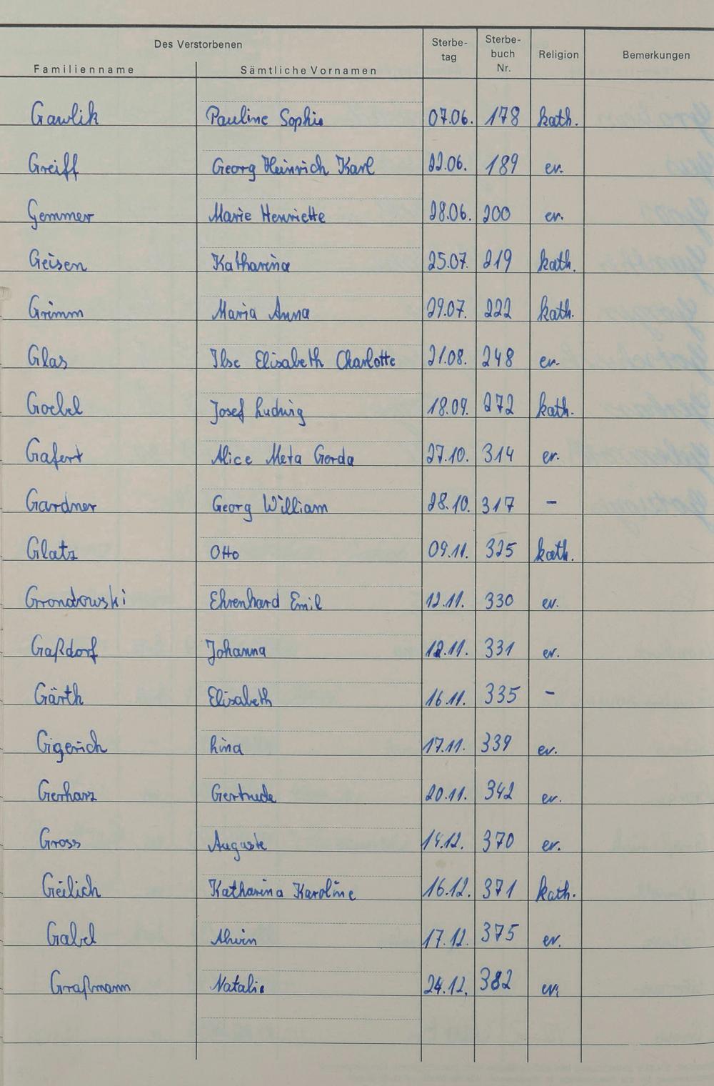G - Register Sterbefälle 1974-1995