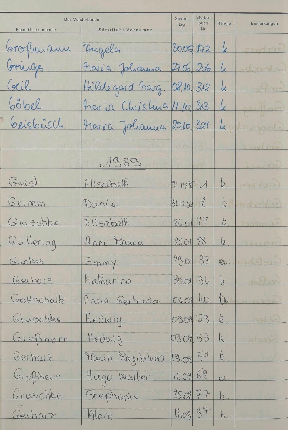 G - Register Sterbefälle 1974-1995