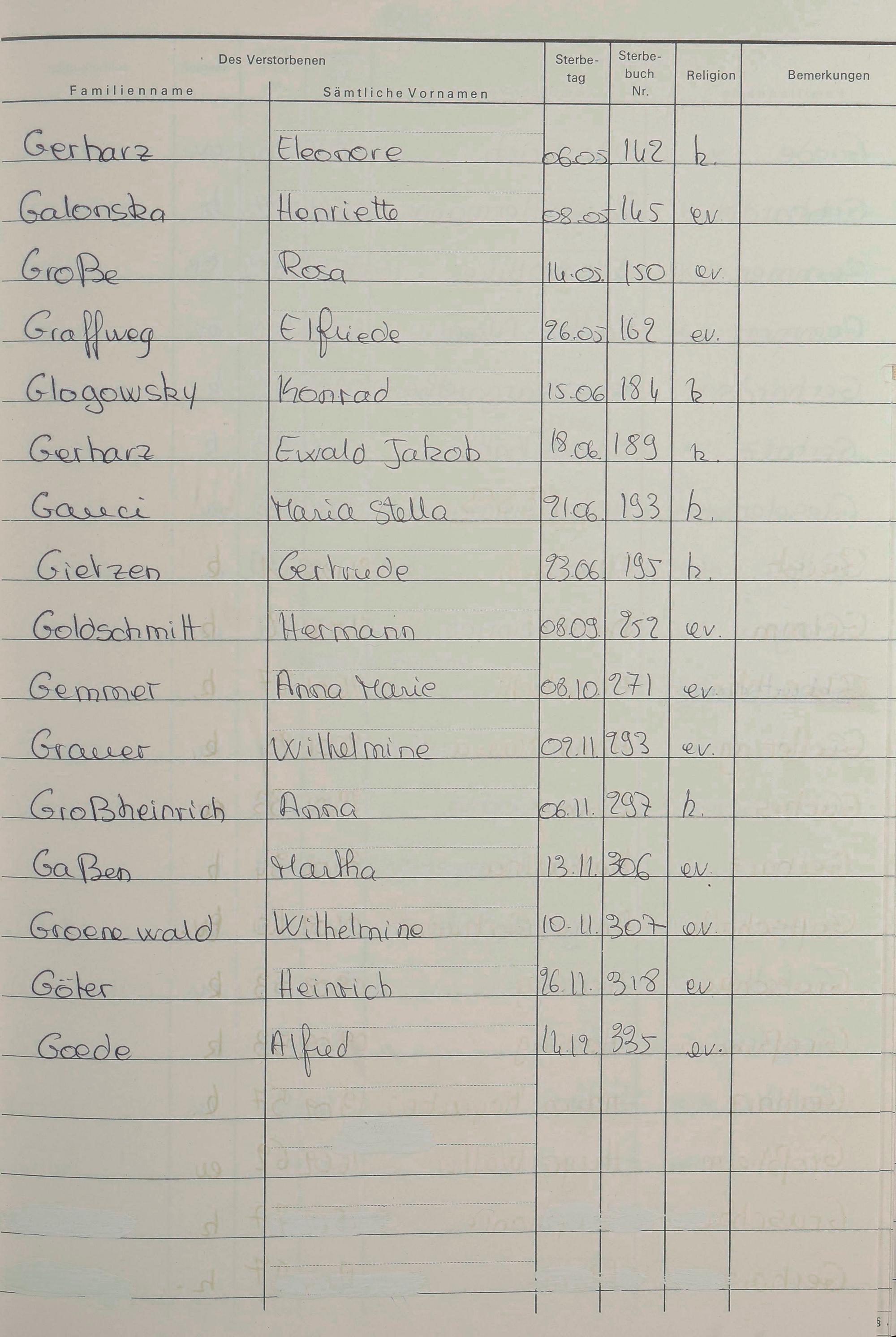 G - Register Sterbefälle 1974-1995