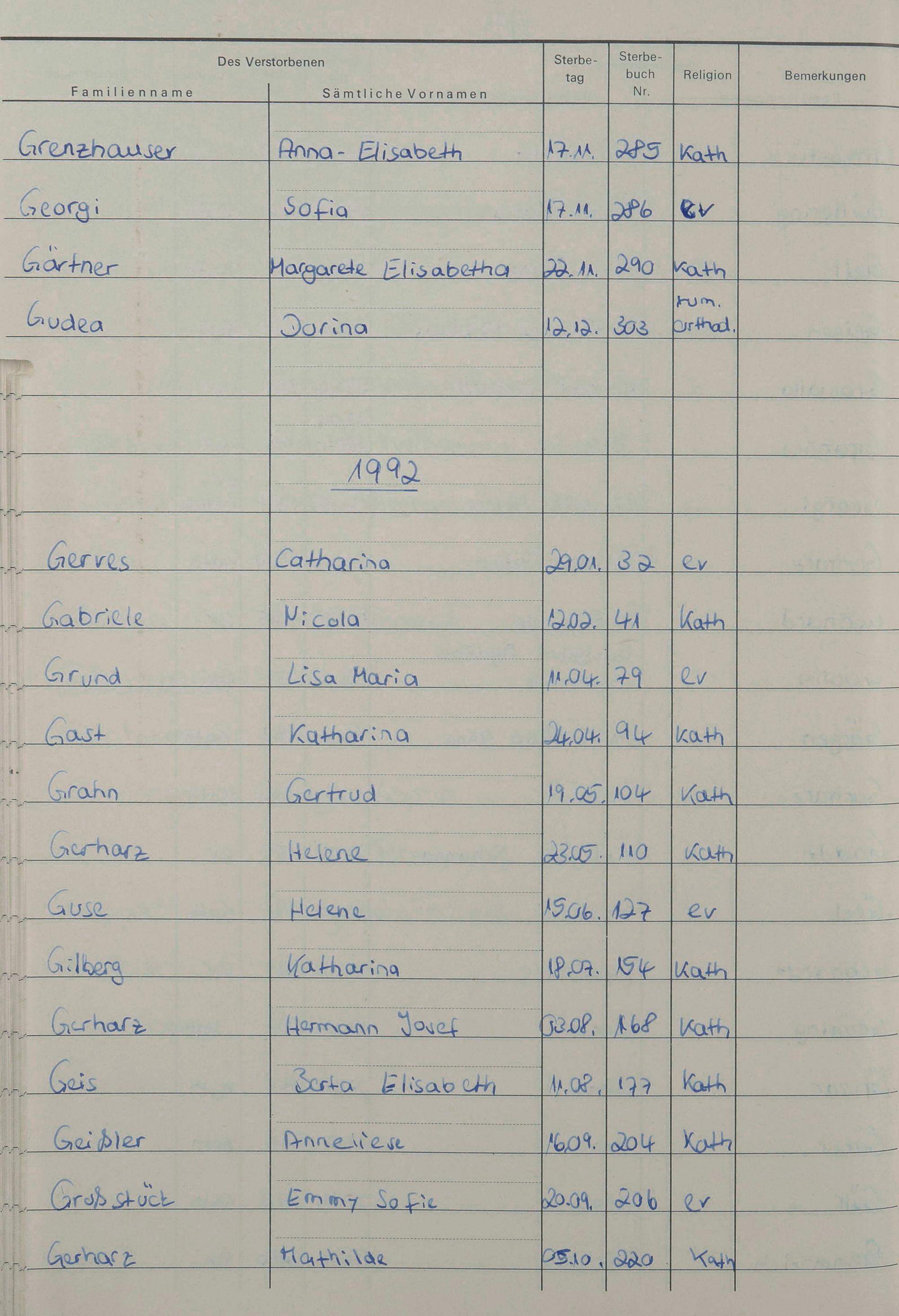 G - Register Sterbefälle 1974-1995