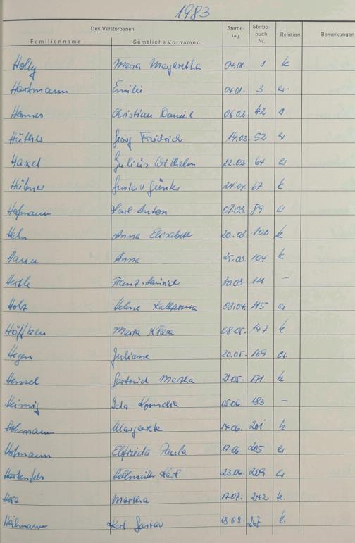 H - Register Sterbefälle 1974-1995