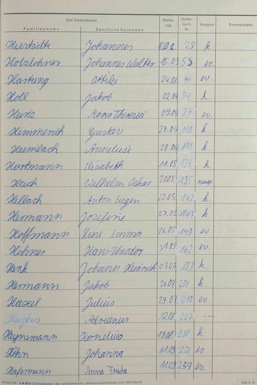 Register A-Z zum Sterberegister 1974-1995