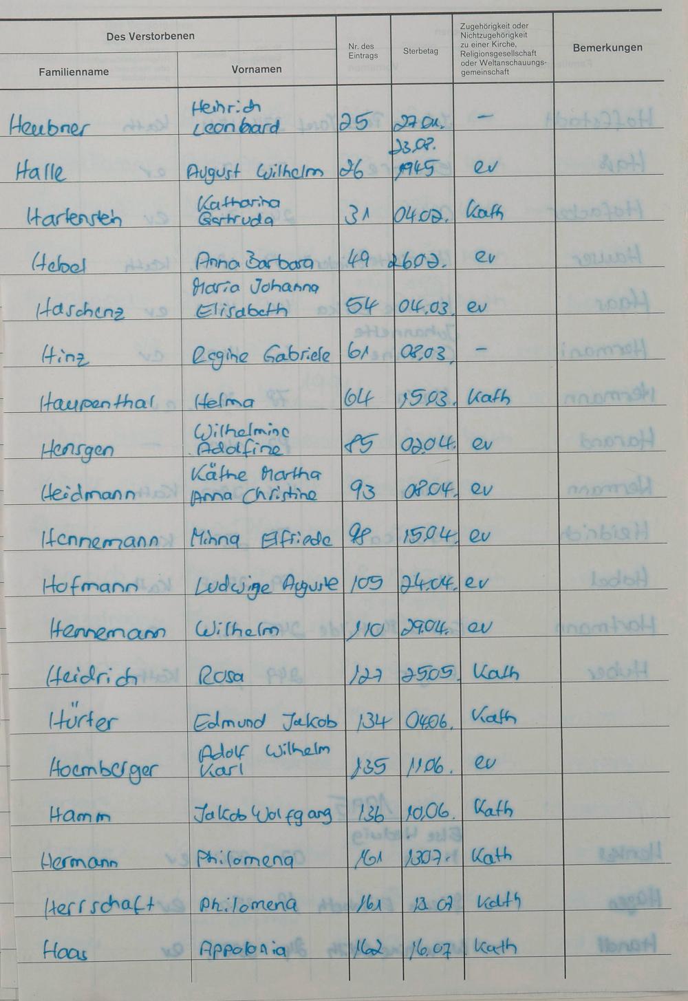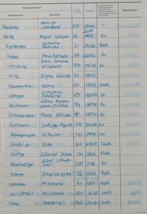 H - Register Sterbefälle 1974-1995